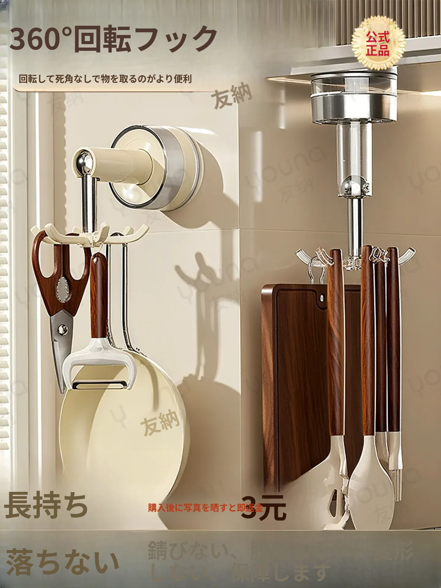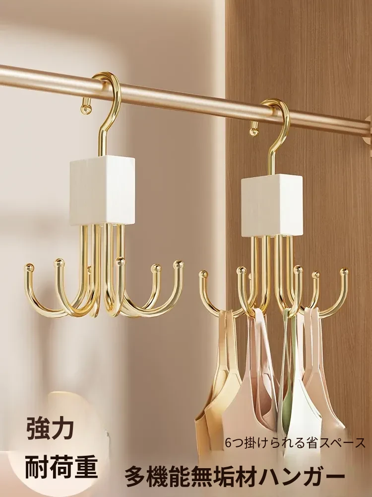 回転式6爪フック 家庭用バッグハンガー 多機能バッグ・下着・ストラップ・帽子用フック 寮用収納マジック!省スペースで整理整頓も簡単!