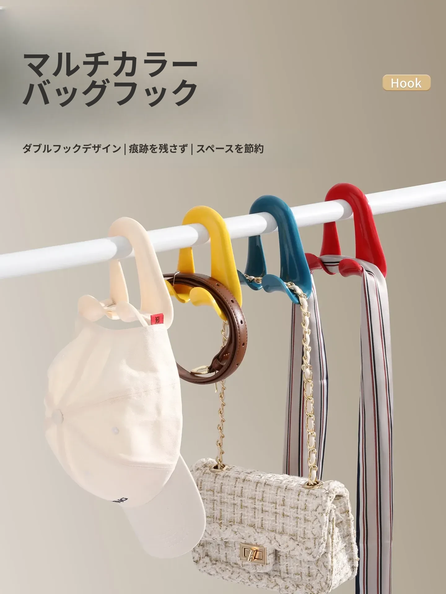 バッグフック 衣類収納の必需品!無痕で使えるバッグラック、スカーフやネクタイも掛けられるアーチ型ハンガー、重ねて使えるコートハンガーで、お部屋をスッキリ整理整頓!