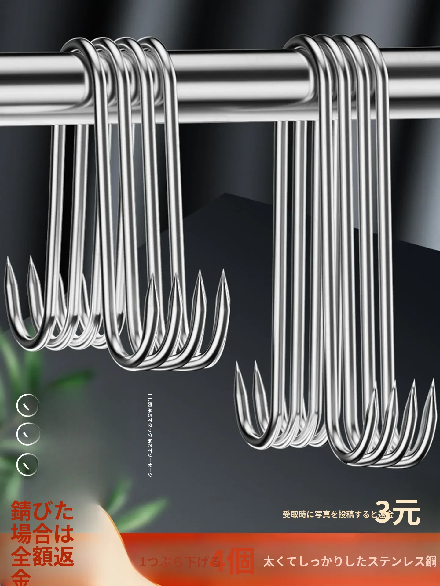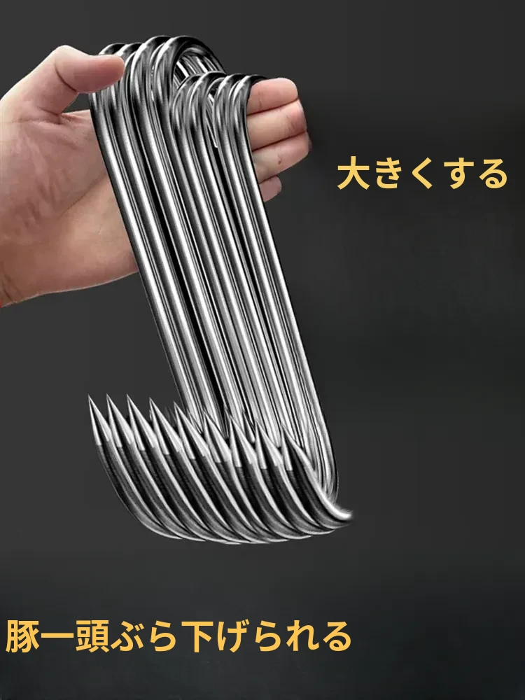 304ステンレス製ダブルフック 太型S字型 乾燥肉・ソーセージ用 大型ハンギングフック 肉をしっかり支える頑丈な設計!