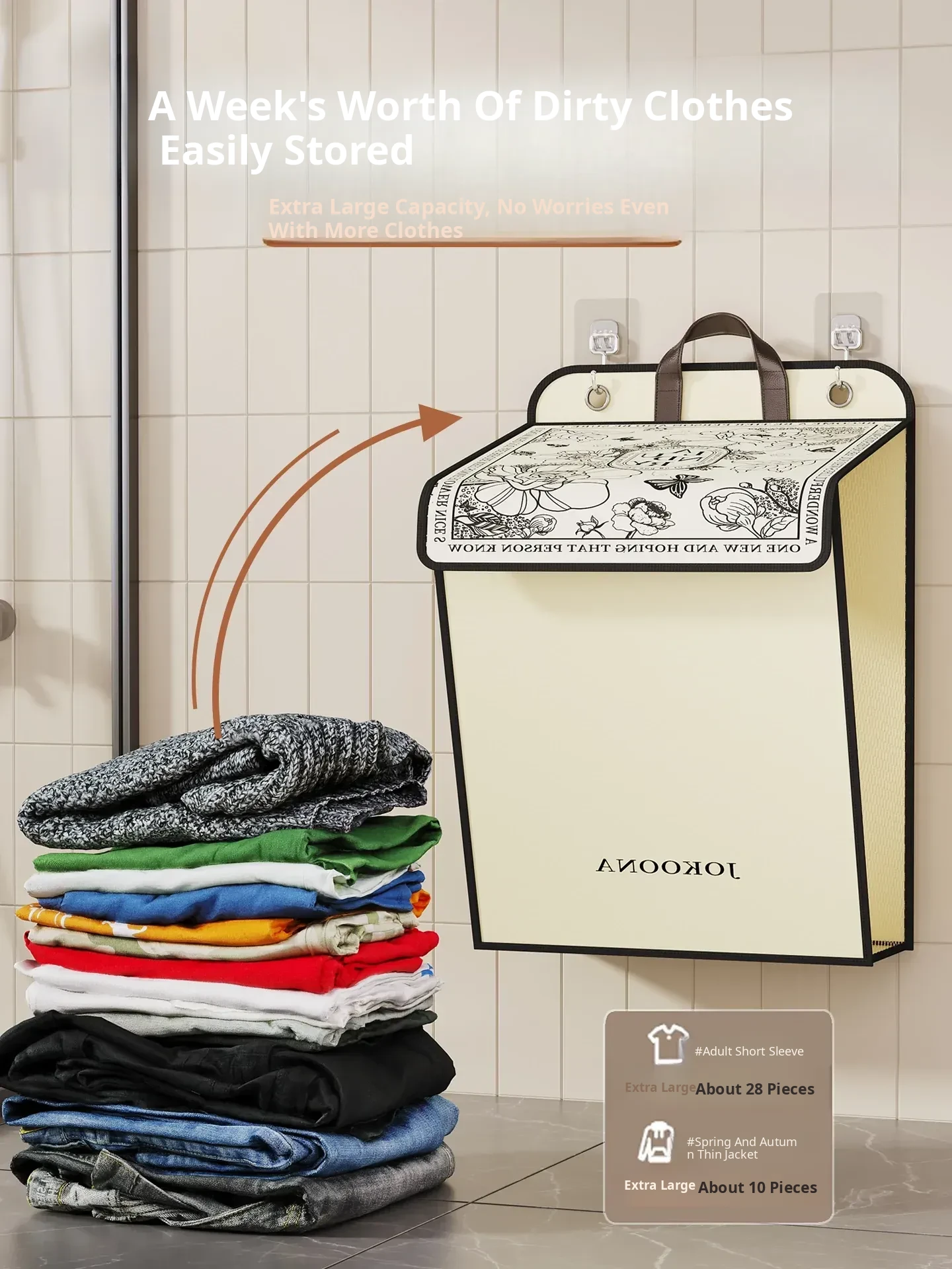 Extra Large✅[Wall-Mounted Folding Model] (Can Hold about 30 Pieces of Dirty Clothes/No Smell after Long-Term Storage)