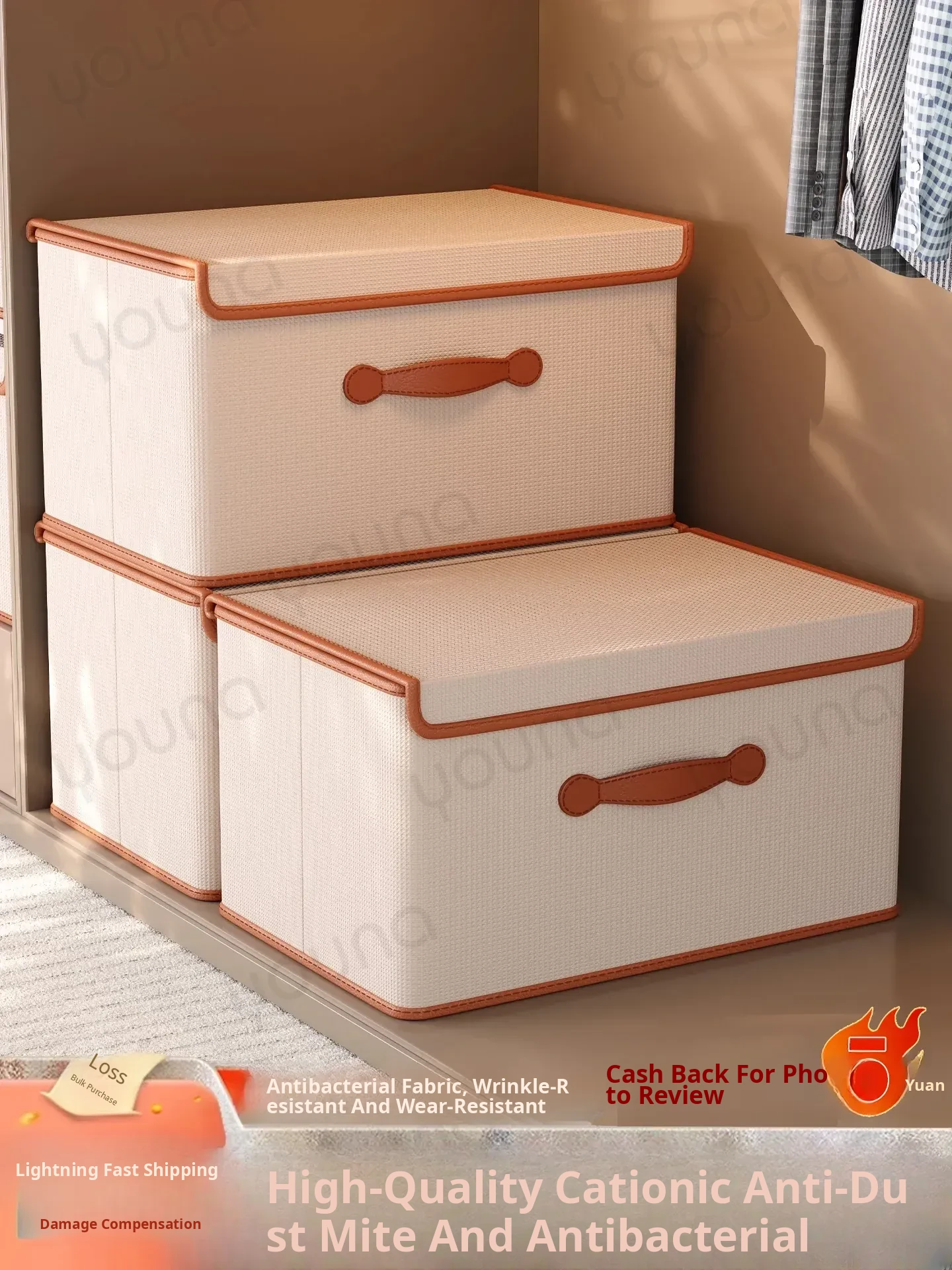 Extra Large Size - Pu Leather + Cationic Light Beige/Extra Large Size [20 Pieces of Thick Autumn and Winter Clothes]