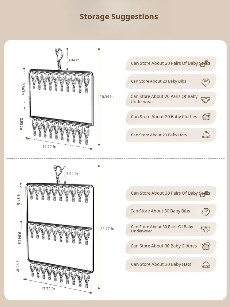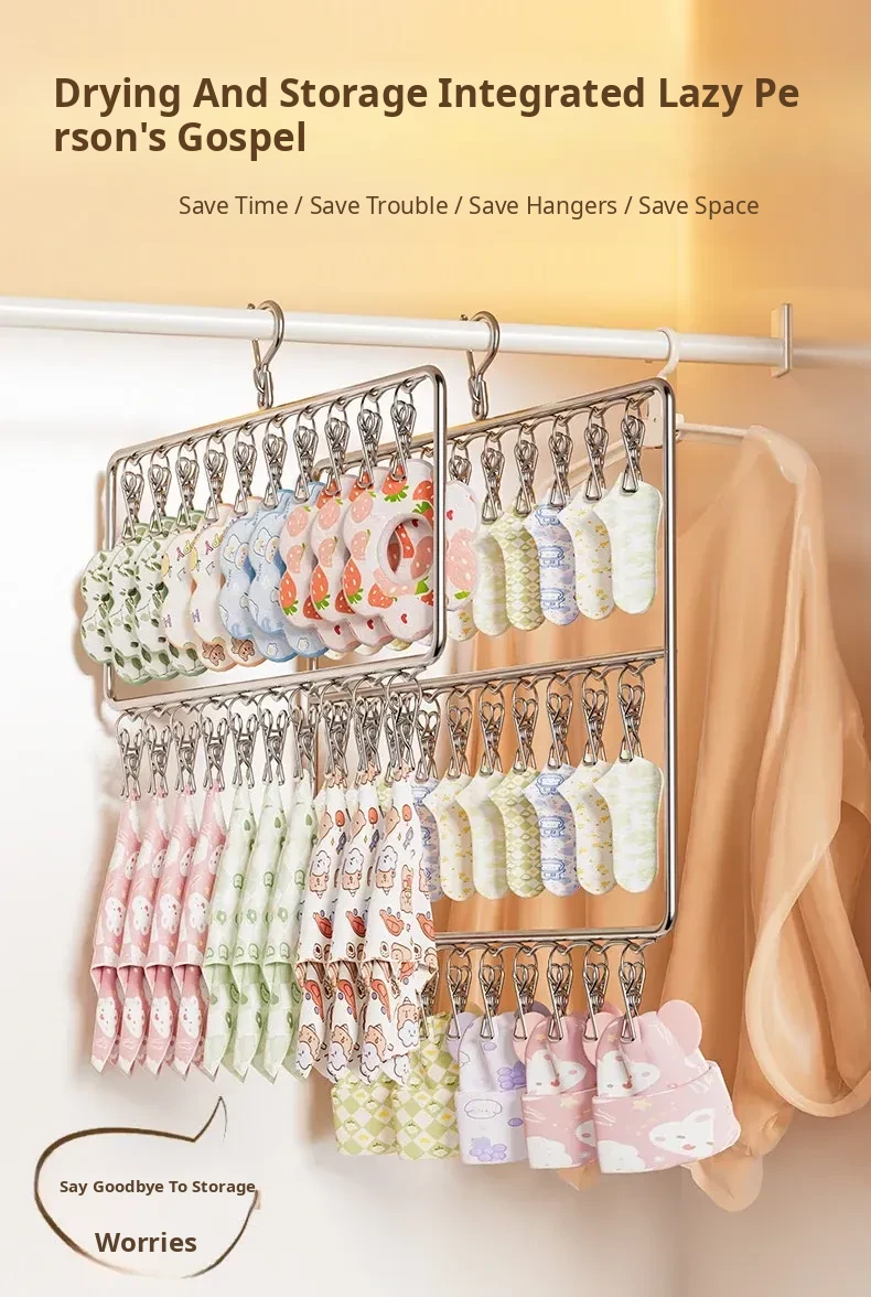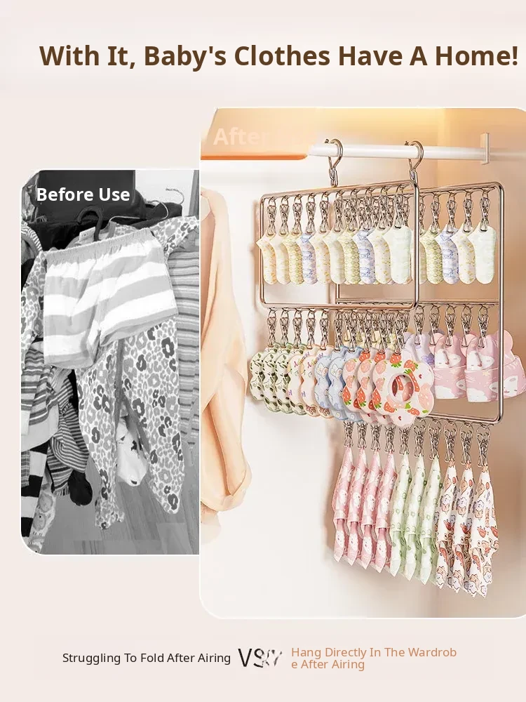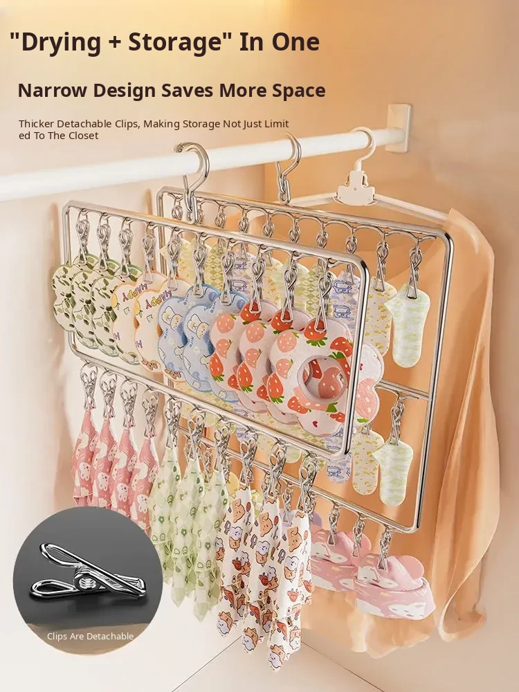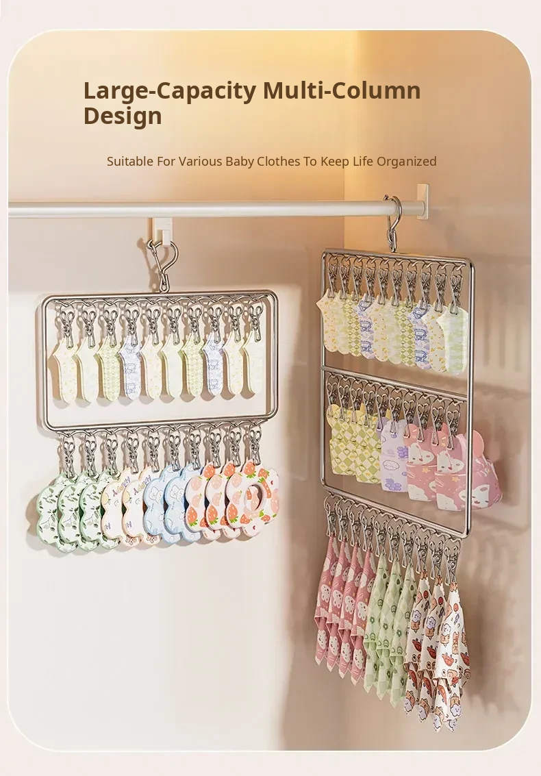 Multi-Clip Kids Hangers: The Ultimate Storage Solution for Home Closets - Baby Sock Drying Rack & Bib Hanging Organizer