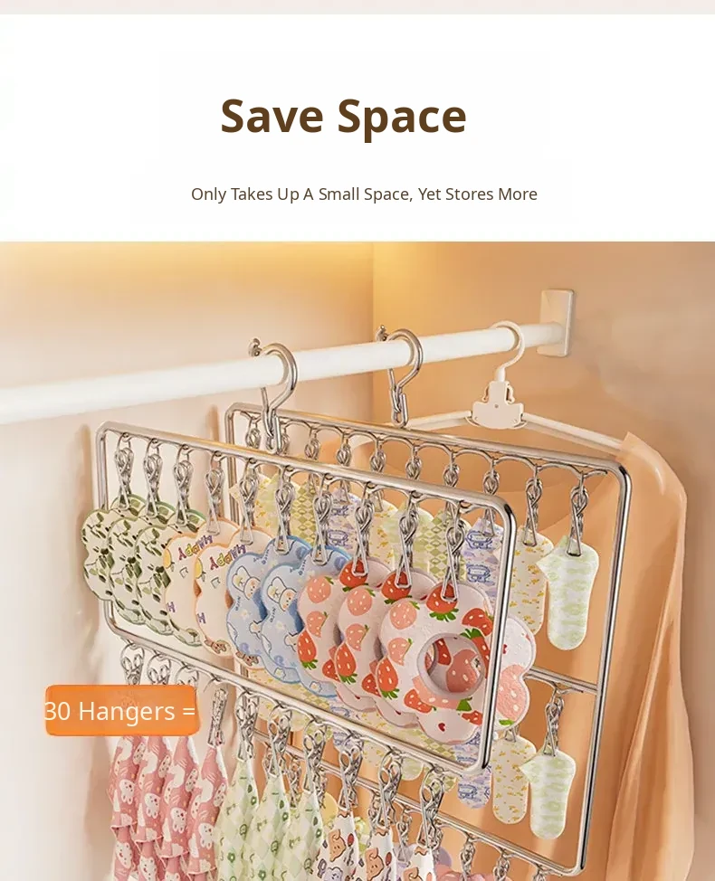 [3 Layers, 30 Clips]❤️Super Space-Saving/Upgraded Thickening/Windproof and Rust-Proof