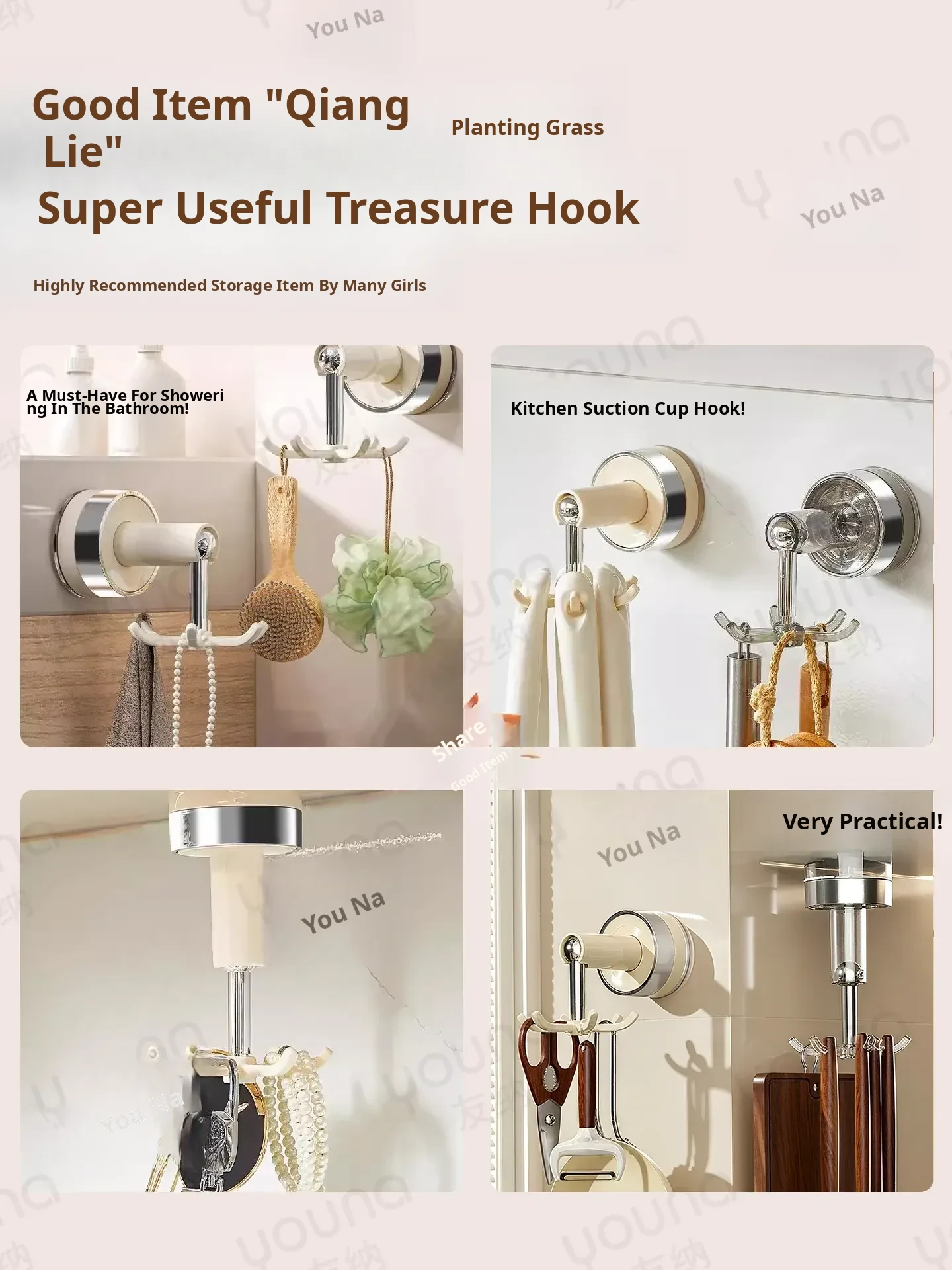 Powerful Suction Cup Hooks for Kitchen and Bathroom - No Drilling Required, Heavy-Duty Multi-Functional Adhesive Hooks for Easy Organization and Space Saving