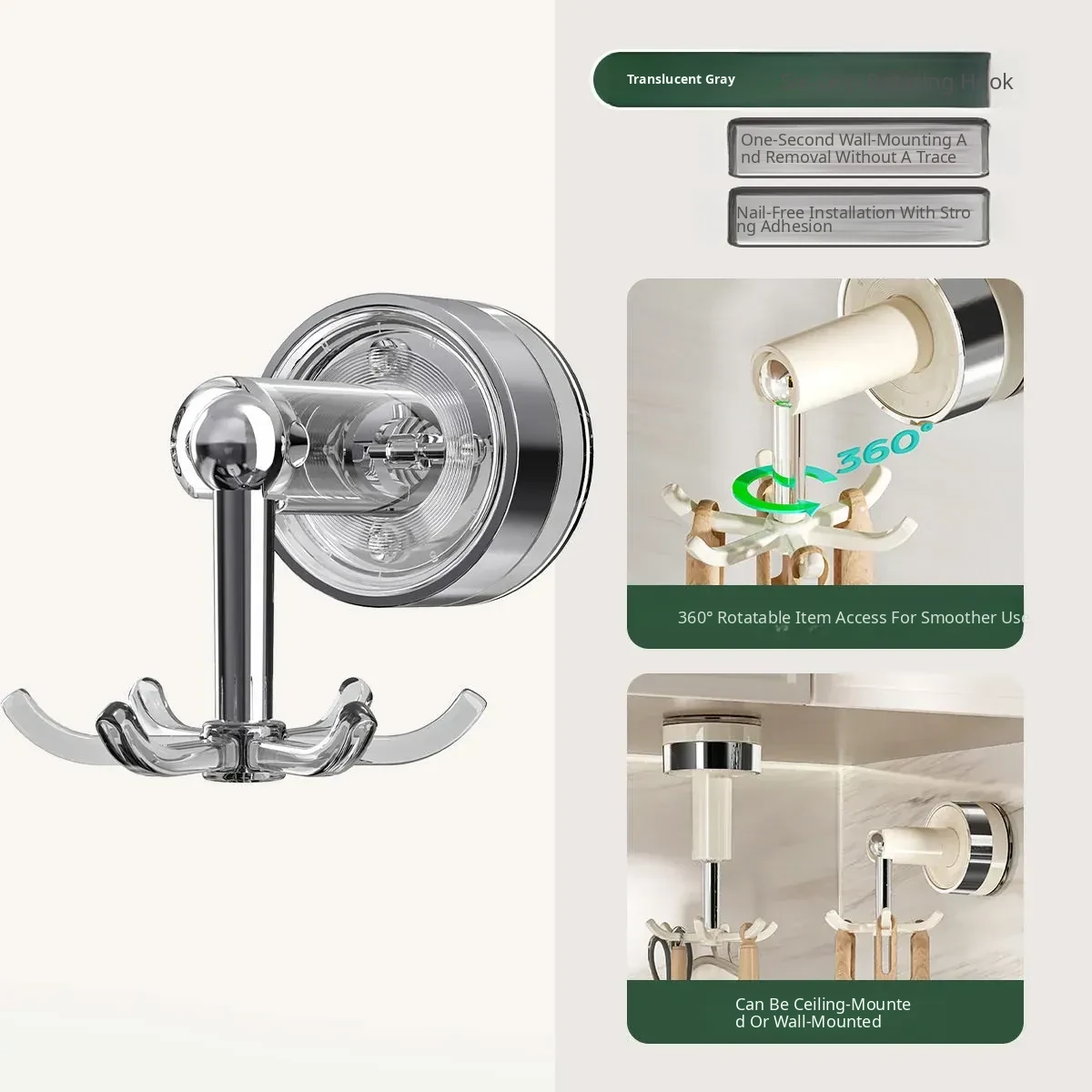 1 Pack - Transparent Gray [Long-Lasting Suction/Can Bear about 15kg Weight/Applicable to 99% of Walls]