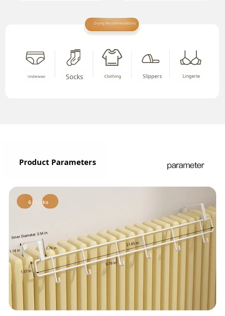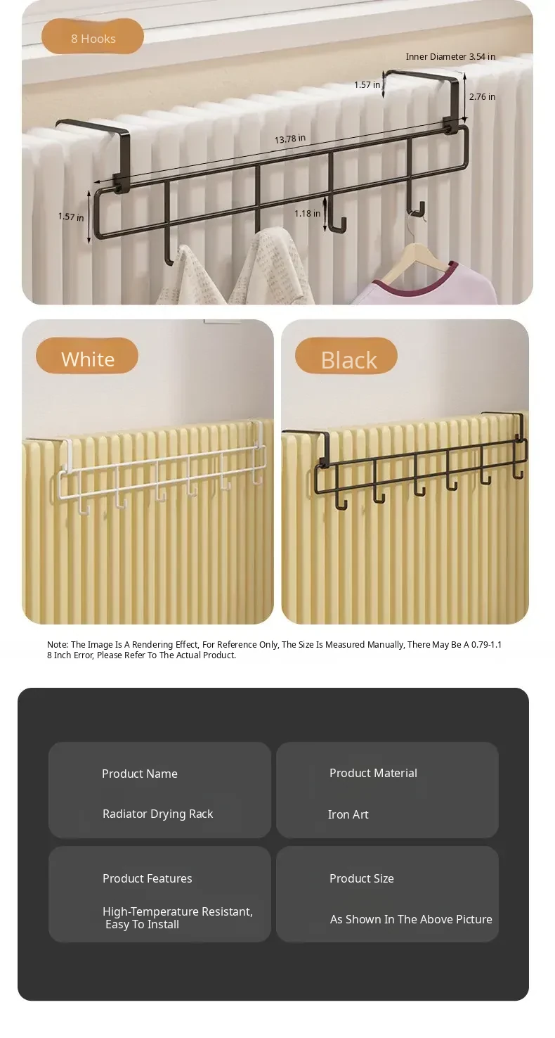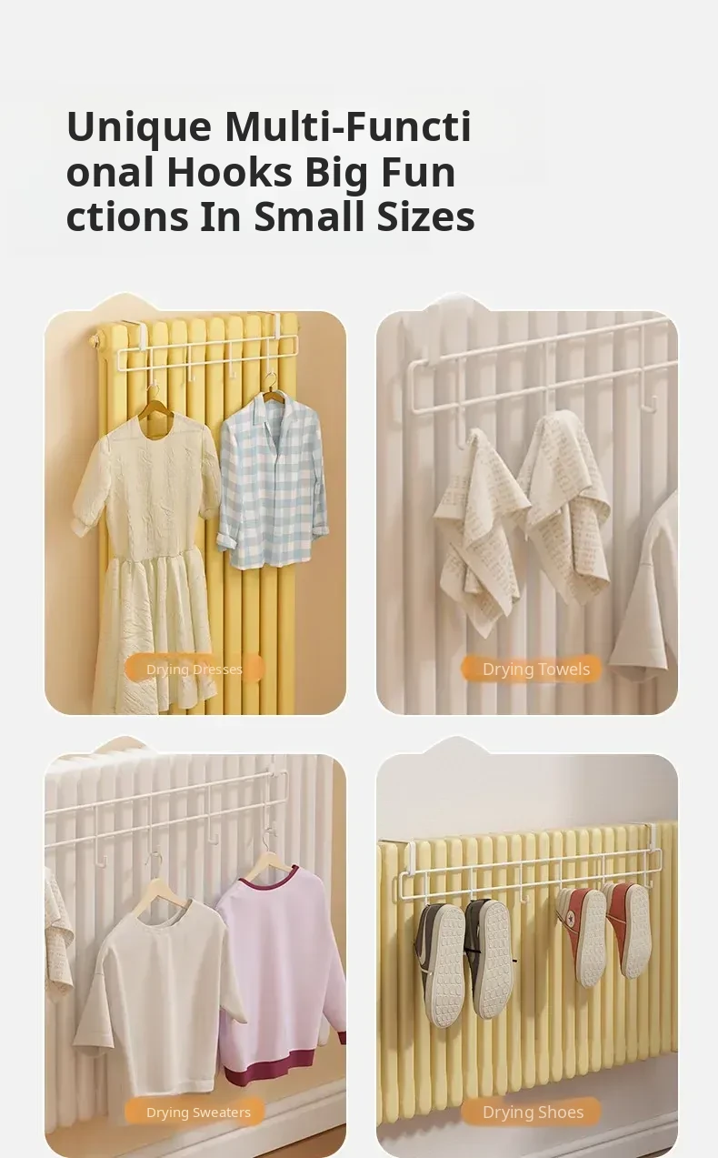 Radiator Hanging Hook Storage Rack - No Drill Clothes Drying Rack for Above Radiators, Perfect Towel Holder and Laundry Solution!