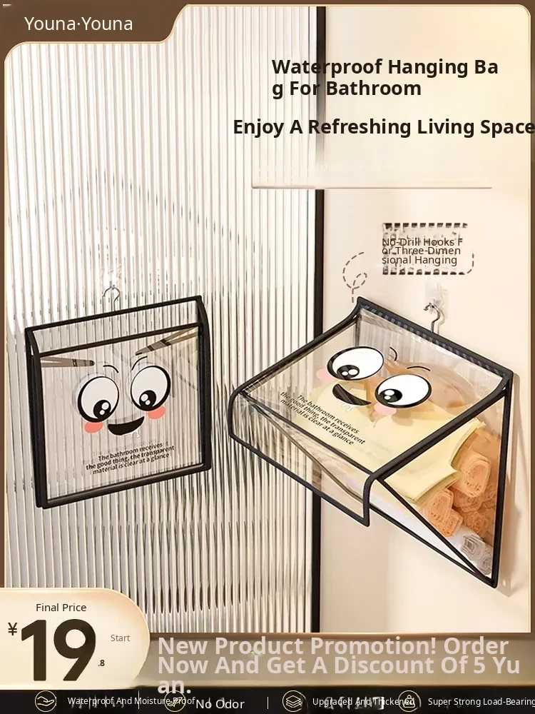 Want Both⭐Mysterious Black + Creamy White⭐New Upgraded Model [Super Large Capacity/Waterproof and Moisture-Proof/Transparent and Visible] Comes with 2 Waterproof Adhesive Hooks