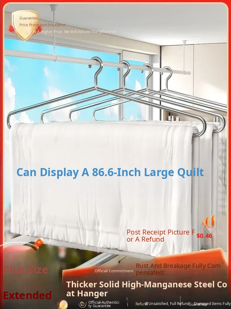Stainless Steel Extra-Large Clothes Drying Rack for Home - Ideal for Bedding, Sheets, and Long Garments - Sturdy and Durable Balcony Drying Stand for Comforters and Duvets
