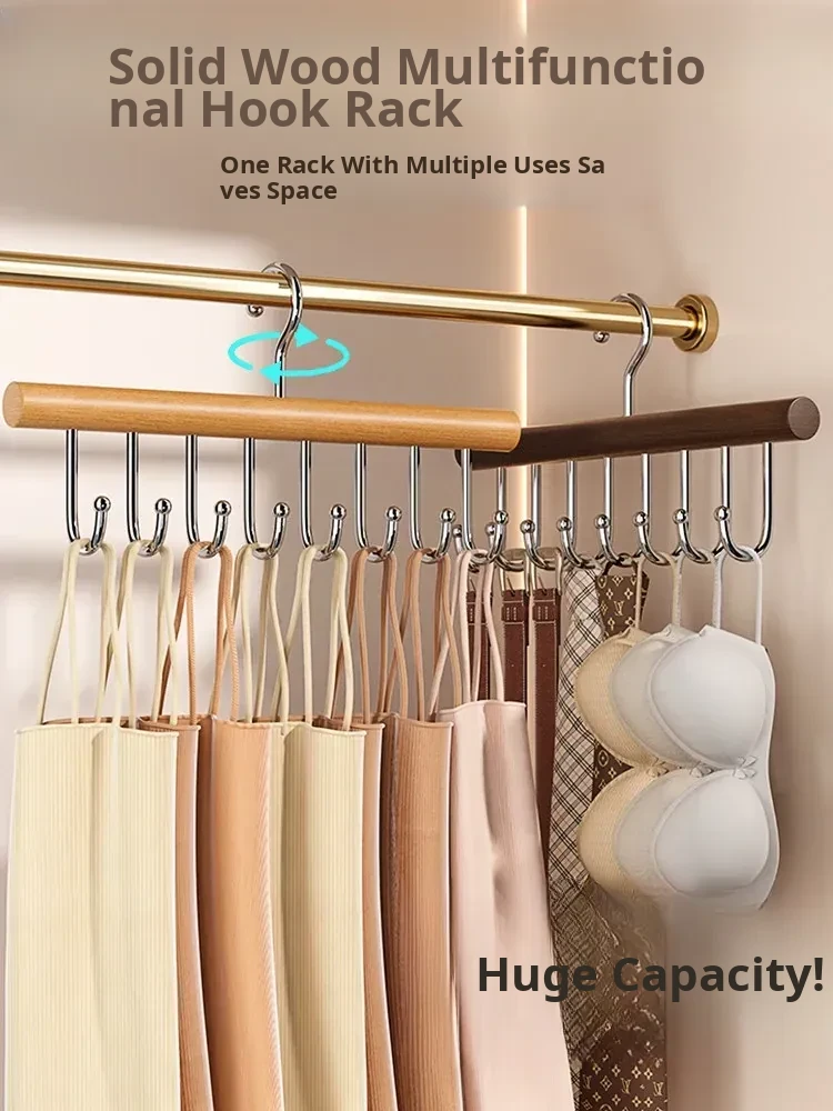 Multifunctional Wooden Hanger - Space-Saving Clothes and Lingerie Organizer with Rotating Hooks for Home and Dorm Use - Stylish and Durable Design for Optimal Storage