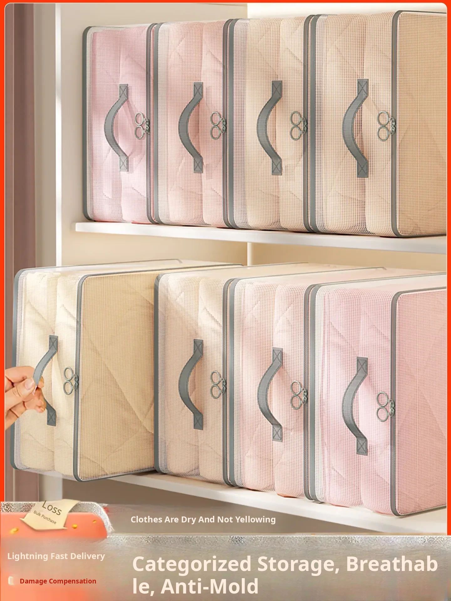Mesh Storage Bag Set for Seasonal Clothing - 4-Piece Organizer for Wardrobe, Dustproof with Dividers and Handles, Perfect for Bedding and Clothes整理,保持衣柜整洁,轻松收纳!