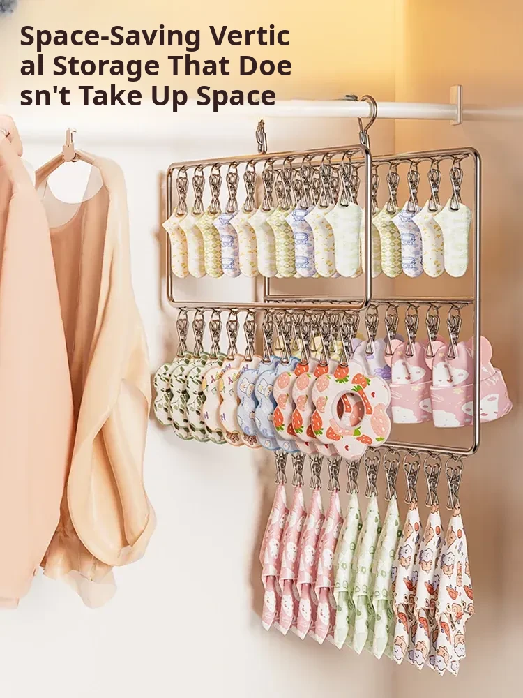 Multi-Clip Kids Hangers: The Ultimate Storage Solution for Home Closets - Baby Sock Drying Rack & Bib Hanging Organizer