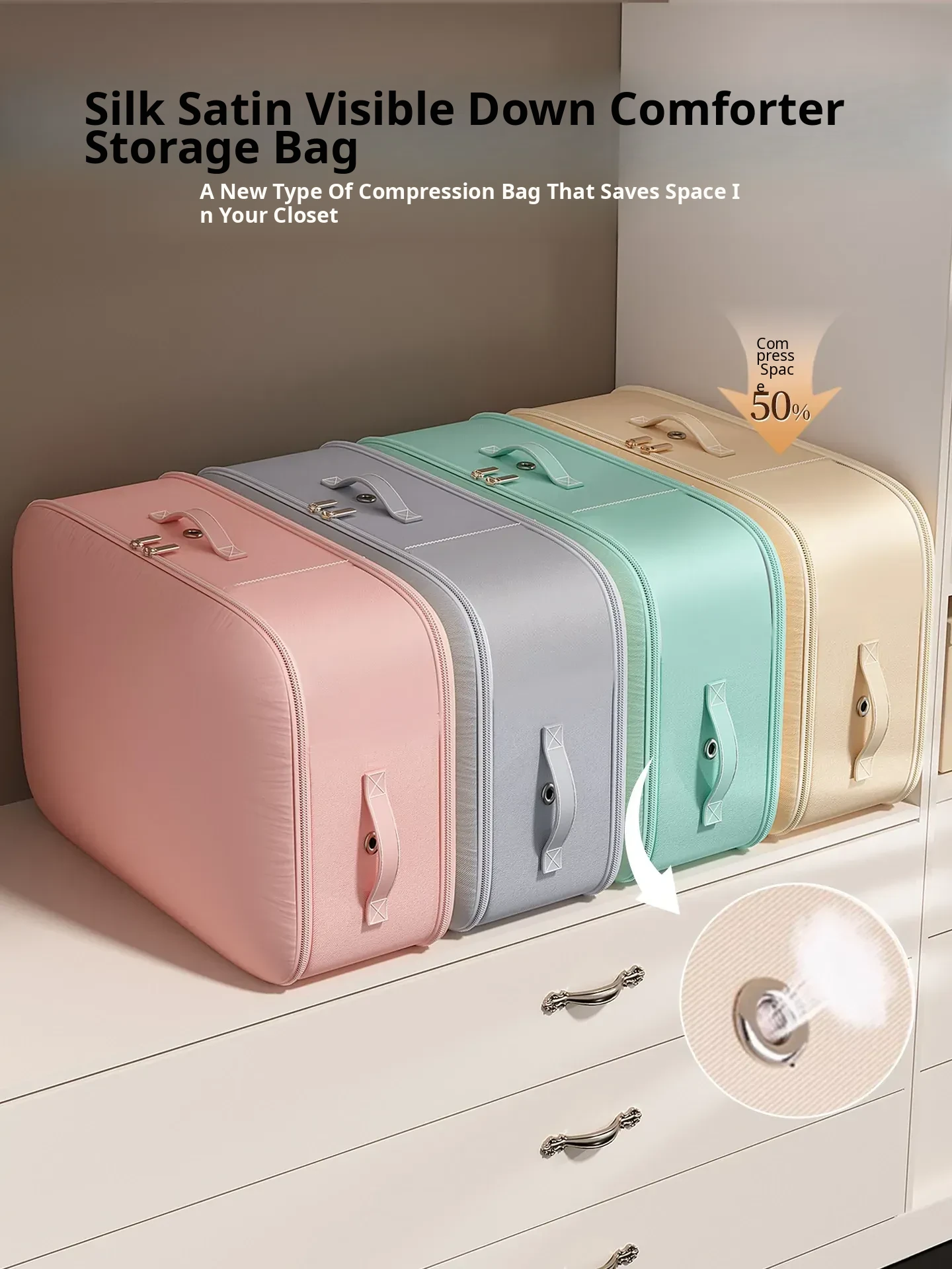 Luxury Silk Duvet Compression Storage Bag - Perfect for Clothes, Down Jackets, and Comforters! Organize Your Wardrobe with This Convenient Portable Storage Solution!