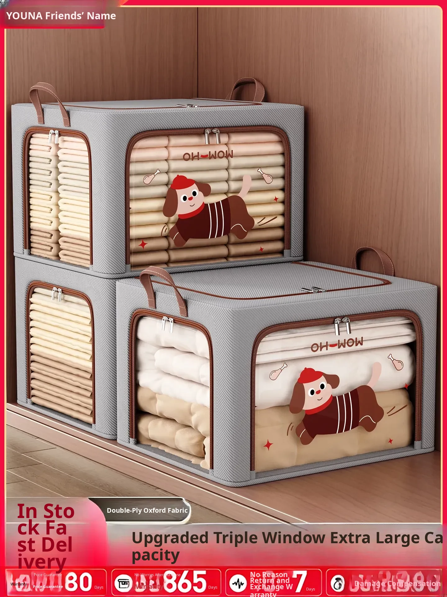 Large Capacity Fabric Storage Box for Clothes and Bedding - Home Organizer with Transparent Window, Perfect for Wardrobe and Closet Organization