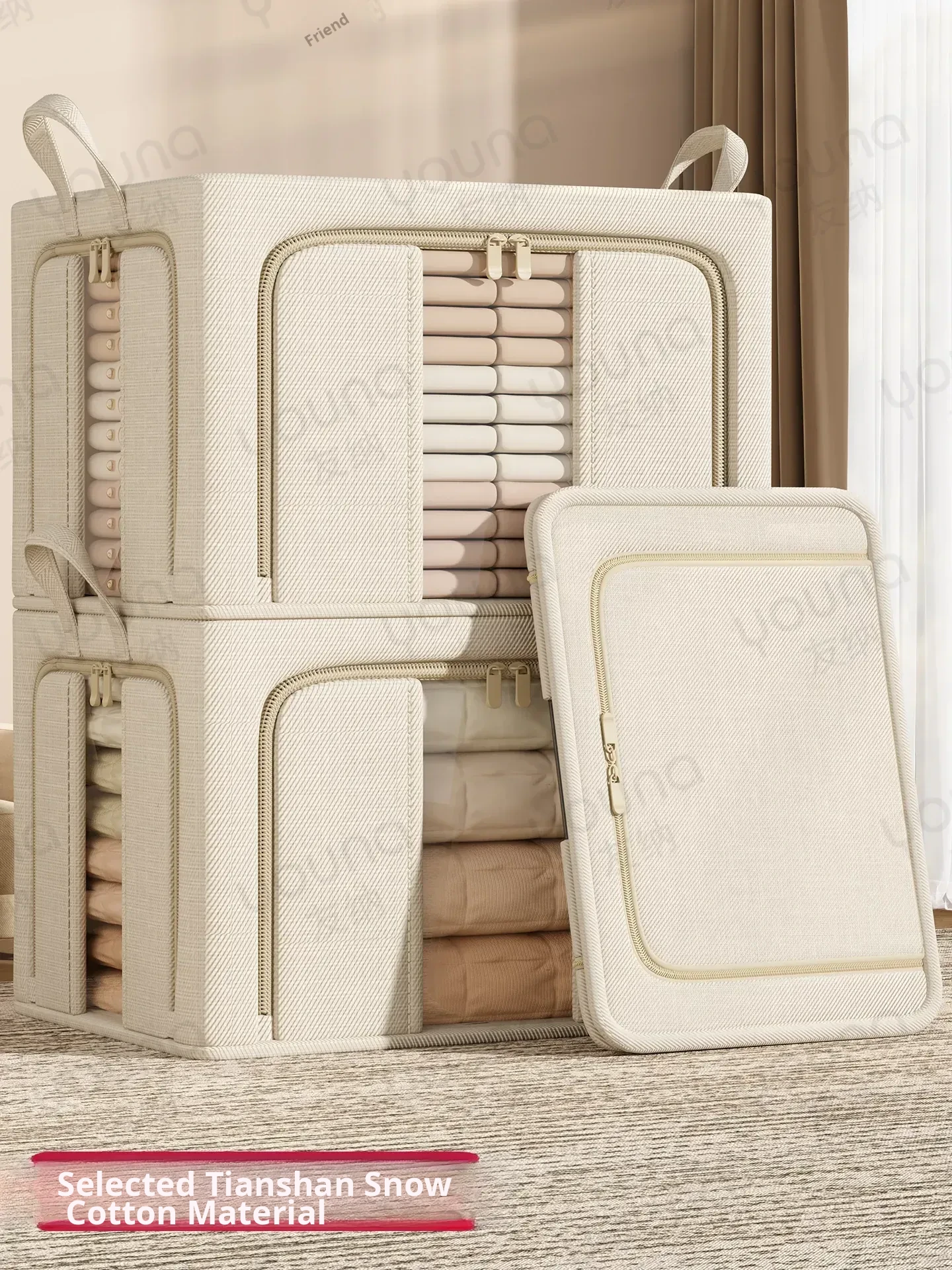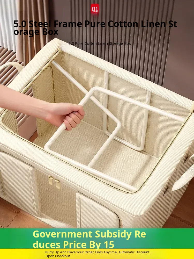 Tianshan Cotton-Linen Storage Box for Clothes - Versatile Organizer for Home Closets, Bedding, and Down Jackets - Foldable Fabric Storage Bin for Dorm Rooms and Beyond
