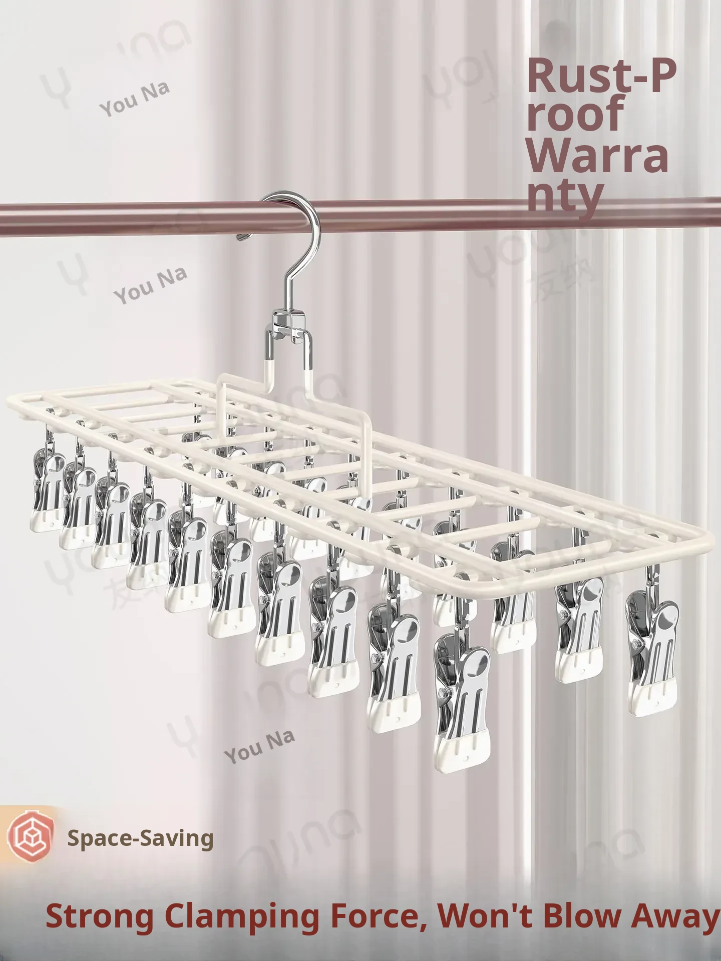 Stainless Steel Sock Drying Rack with Multiple Clips - Home Balcony Clothesline for Underwear and Baby Socks, Windproof Clothes Hanger, Essential Laundry Organizer