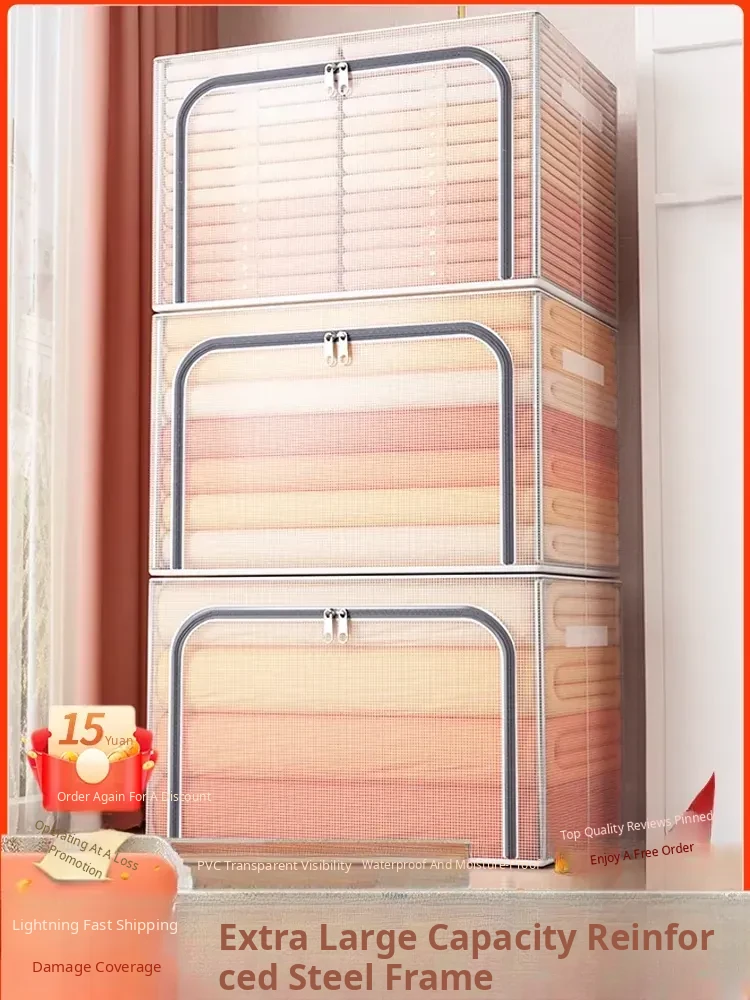 Large Capacity Fabric Storage Box for Clothes and Bedding - Home Organizer with Transparent Window, Perfect for Wardrobe and Closet Organization