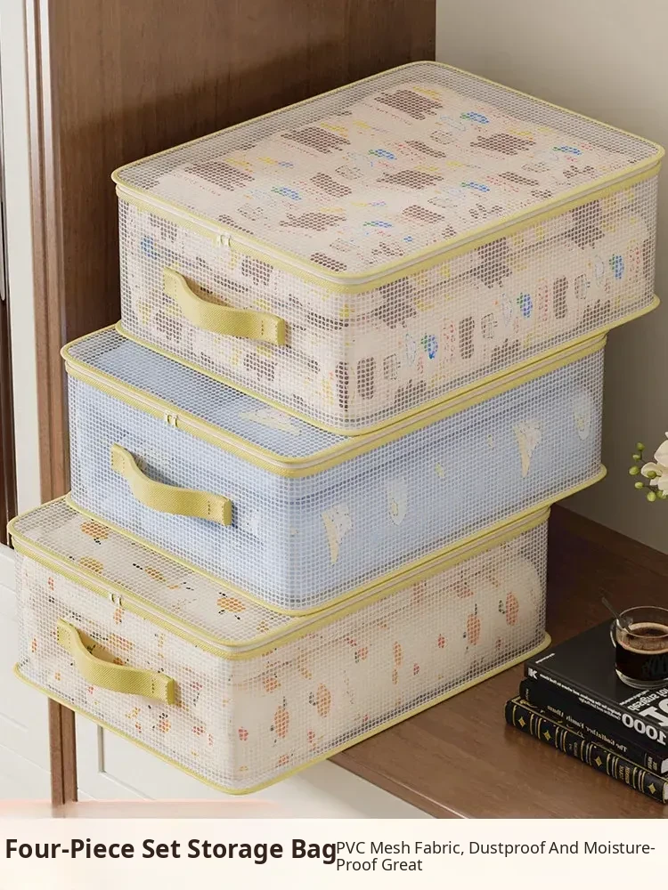 "Large Capacity 4-Piece Storage Set - Transparent Clothing Organizer Bags for Wardrobe, Perfect for Storing Clothes, Bed Sheets, and Duvet Covers"