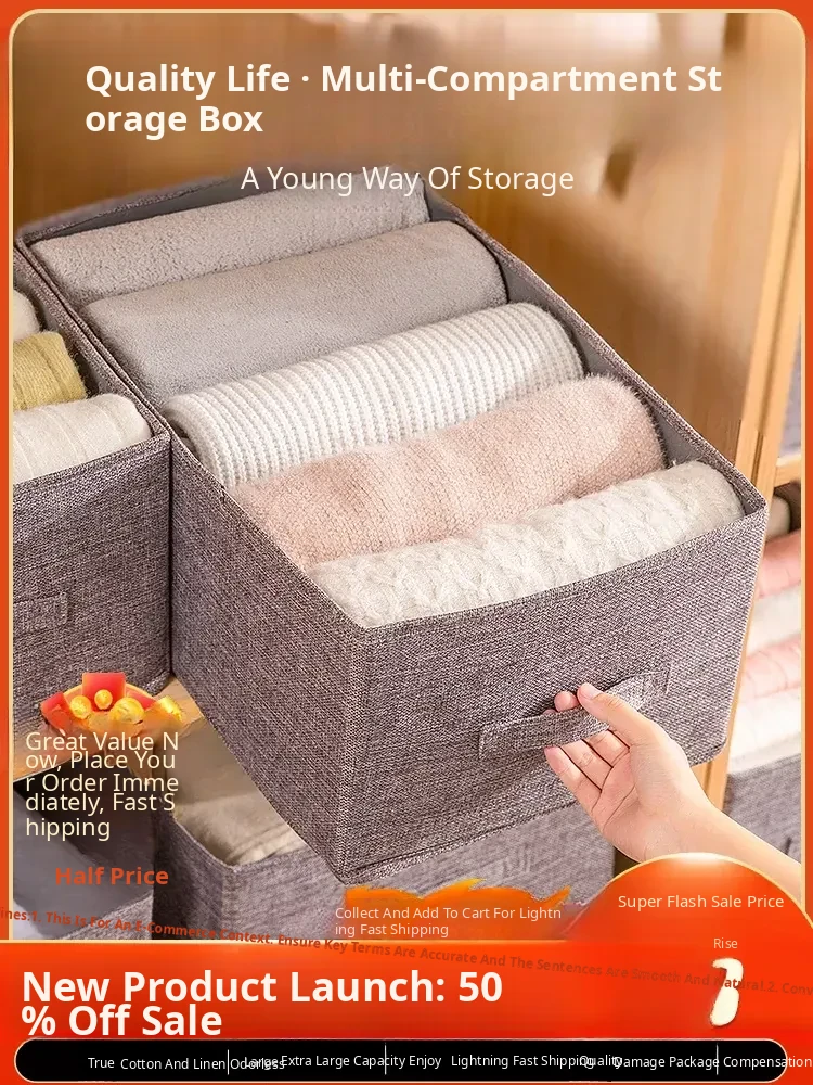 Cotton and Linen Storage Box - Drawer-Style Fabric Organizer for Clothes and Pants, Ideal for Closet Layered Organization and Separation, Perfect for Home Use