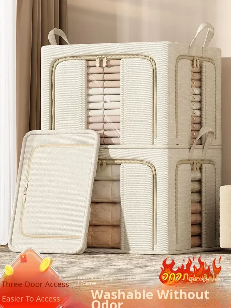 Tianshan Cotton-Linen Down Jacket Storage Box - Space-Saving Organizer for Home Wardrobe, Perfect for Clothes, Blankets, and More - Foldable Multifunctional Storage Solution
