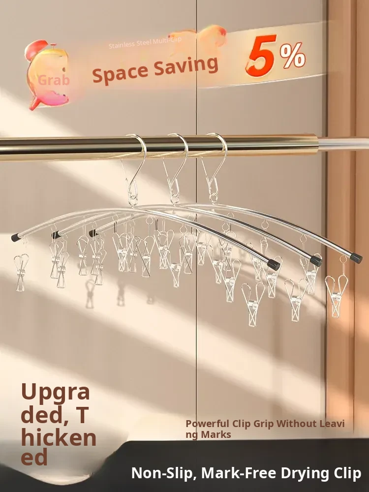 Stainless Steel Sock Clipper - Multi-Clip Windproof Underwear Drying Rack, Versatile Home Balcony Sock Drying Solution, Perfect for Indoor and Outdoor Use!
