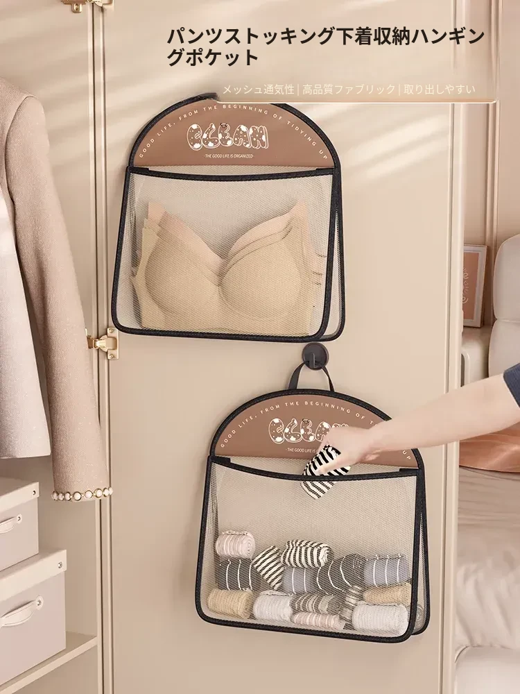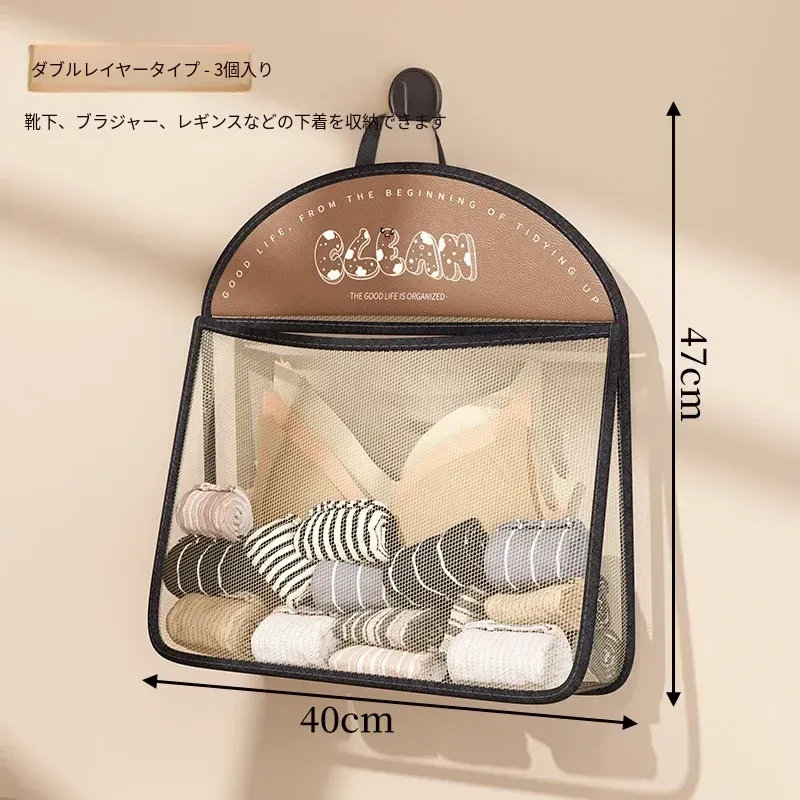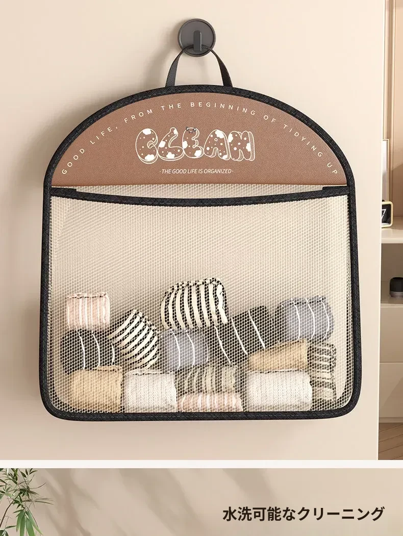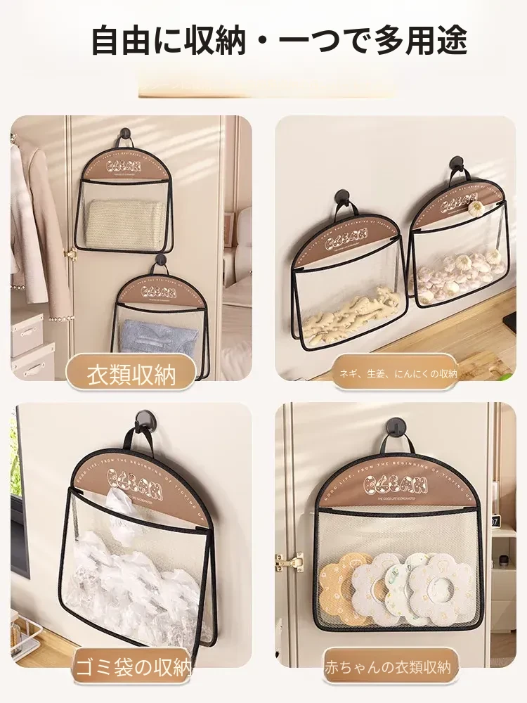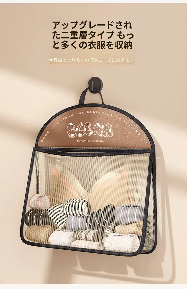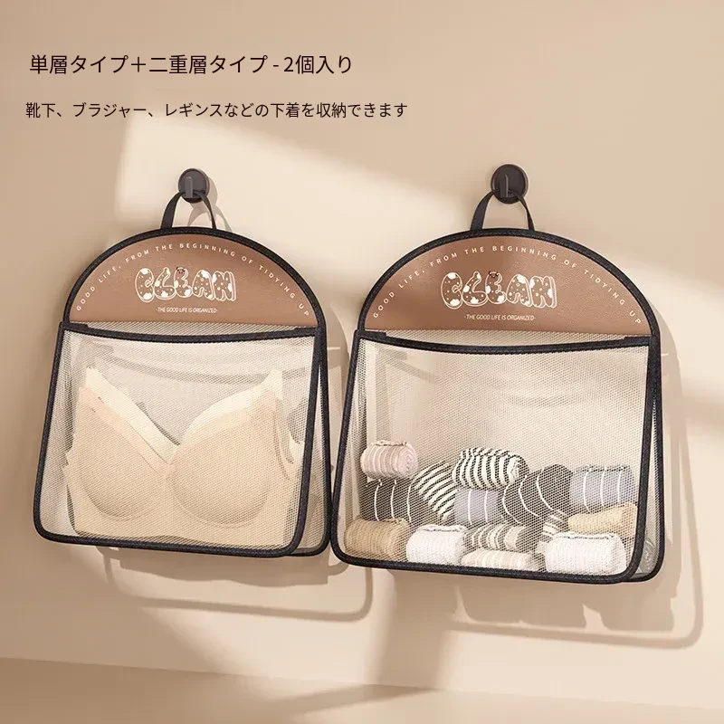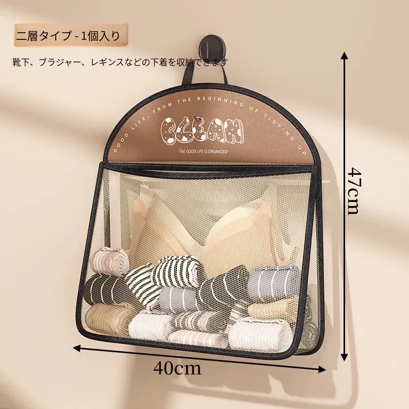 内衣や靴下をすっきり収納!掛けられる壁面収納ポケット - 扉の裏にぴったりの便利アイテム!お部屋をスッキリ整理できるマルチネットポケット!