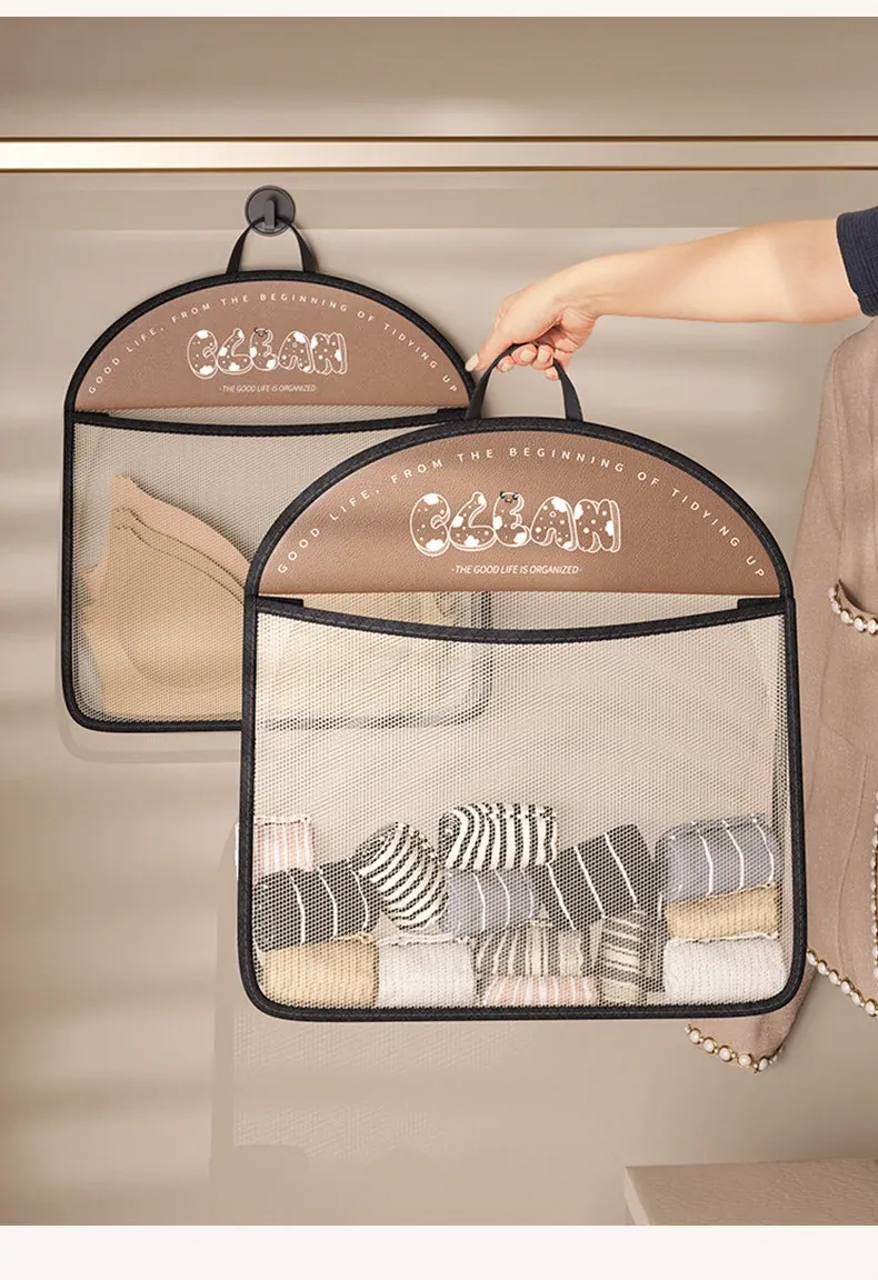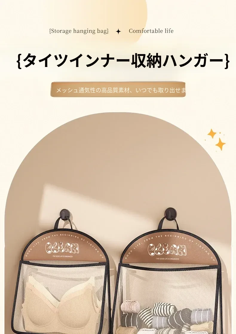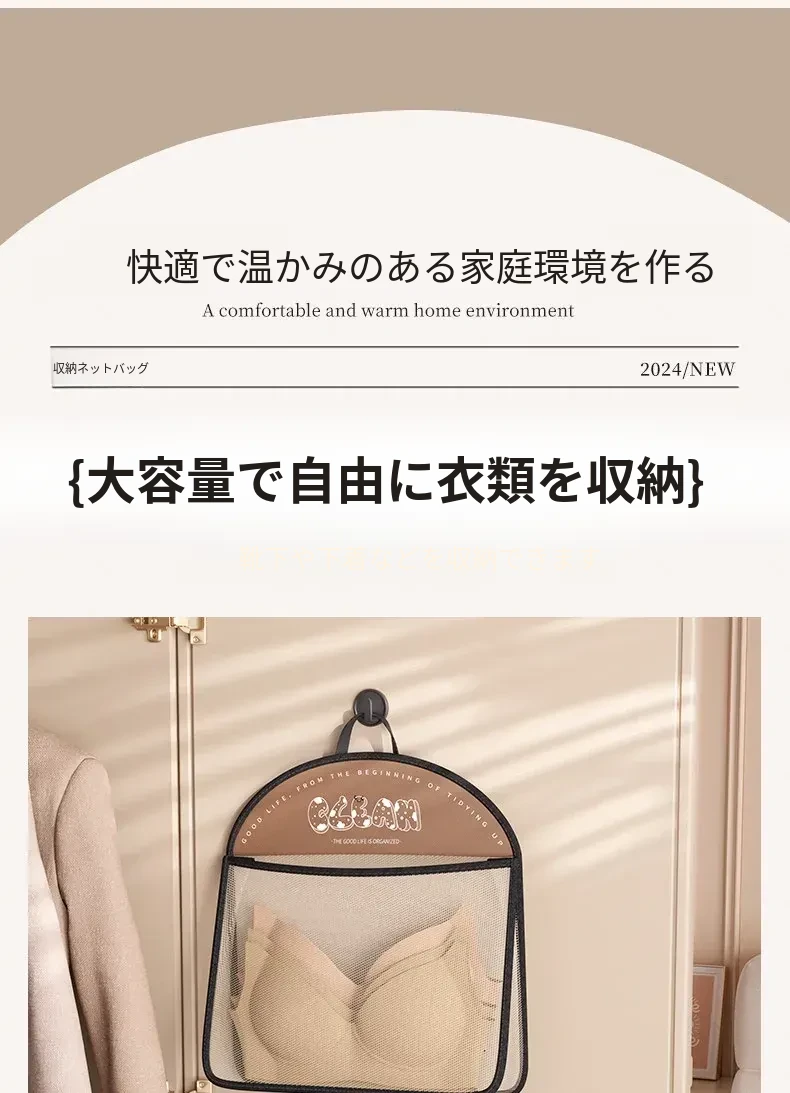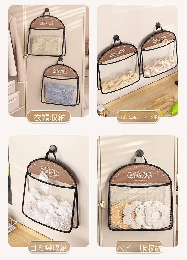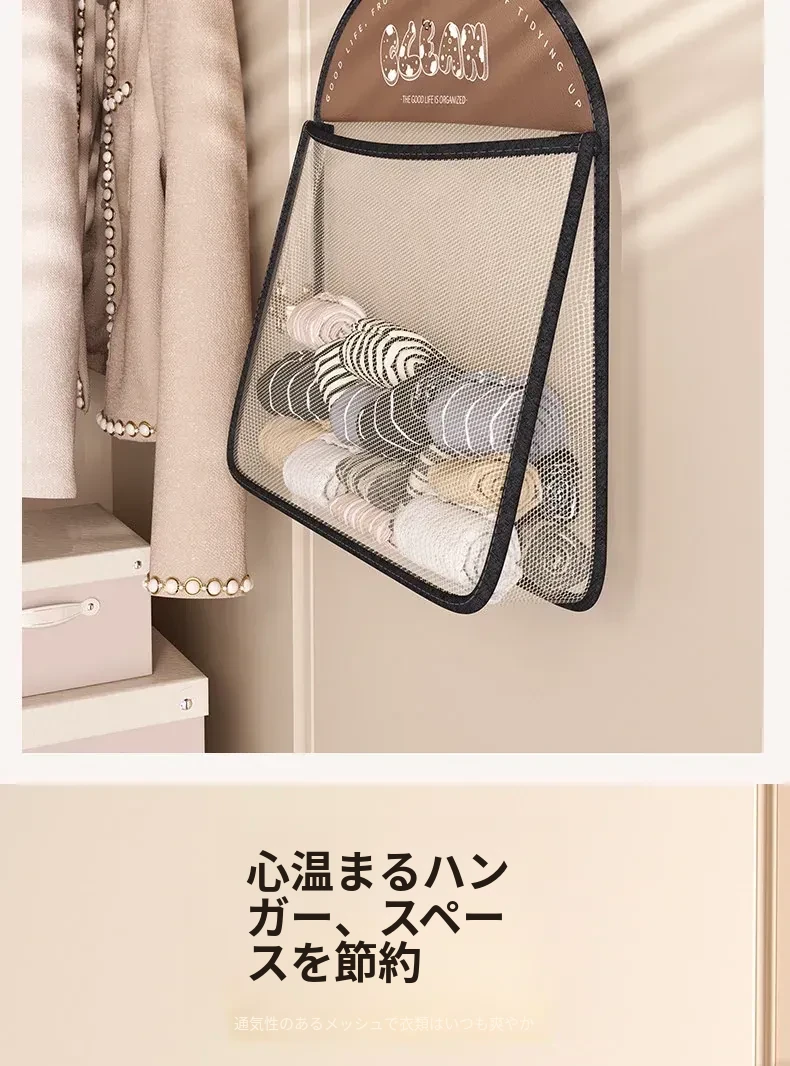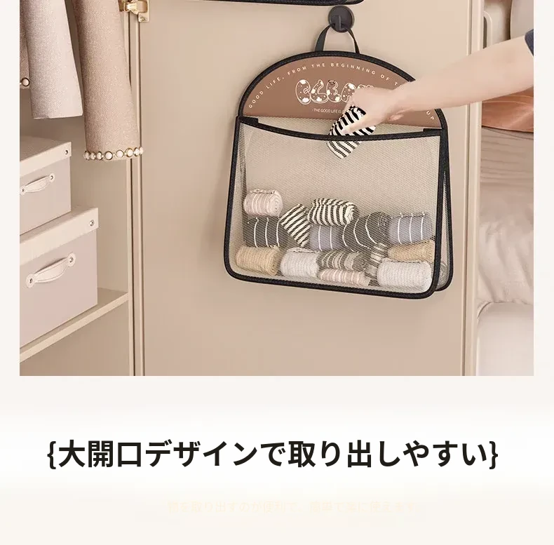 内衣や靴下をすっきり収納!掛けられる壁面収納ポケット - 扉の裏にぴったりの便利アイテム!お部屋をスッキリ整理できるマルチネットポケット!
