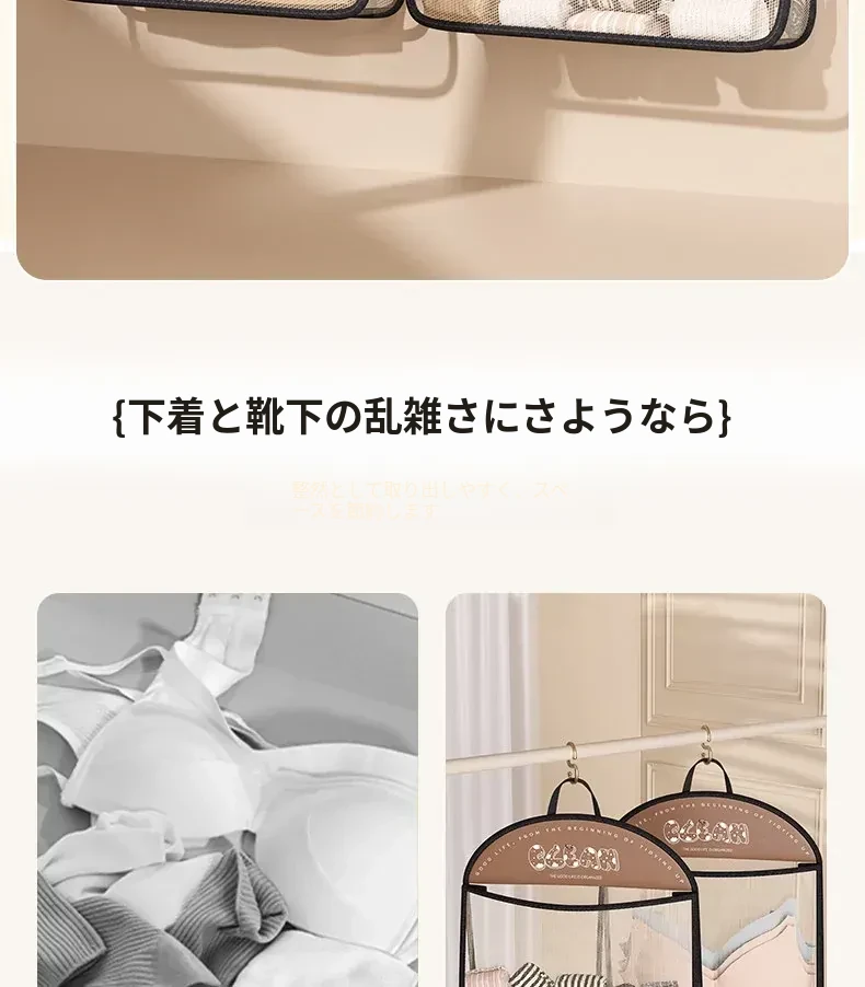 アップグレードされた二層タイプ-1個入り【靴下・下着・パンツの分類収納】・【大きくて広いフック付き】