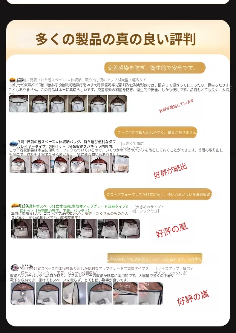 アップグレードされた二層タイプ❣️2個入り【靴下・下着・パンツの分類収納】・【大きくて広いフック付き】