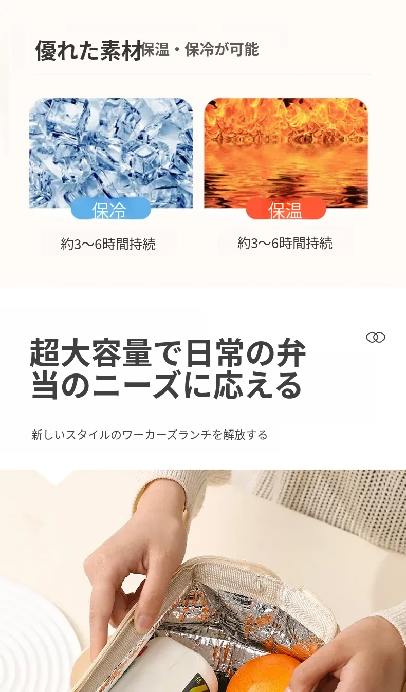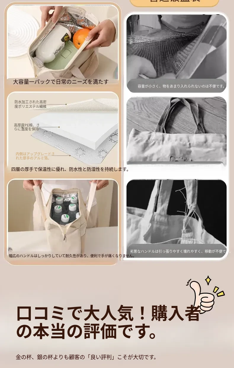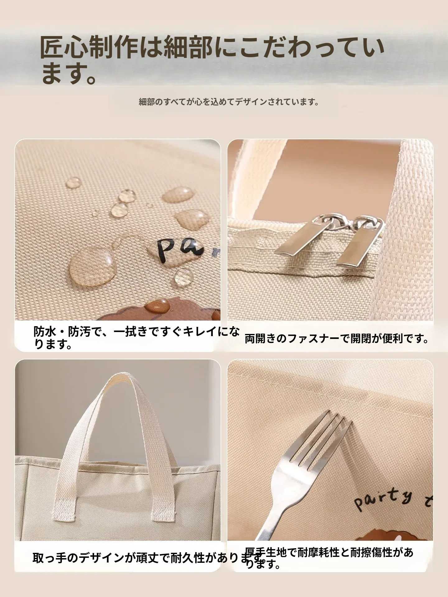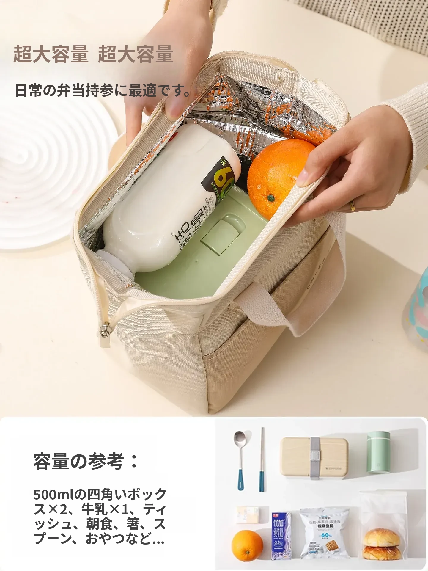 防水&保温!厚手アルミ箔ランチボックスバッグ - 通勤・学生に最適なランチ持参用トートバッグ【おしゃれで実用的】