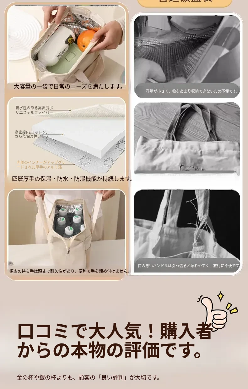 保温ランチバッグ - 上班族や学生に最適!防水・厚手アルミ箔仕様で、あなたのランチをしっかり守ります。おしゃれで実用的なデザイン、毎日の昼食がもっと楽しく!