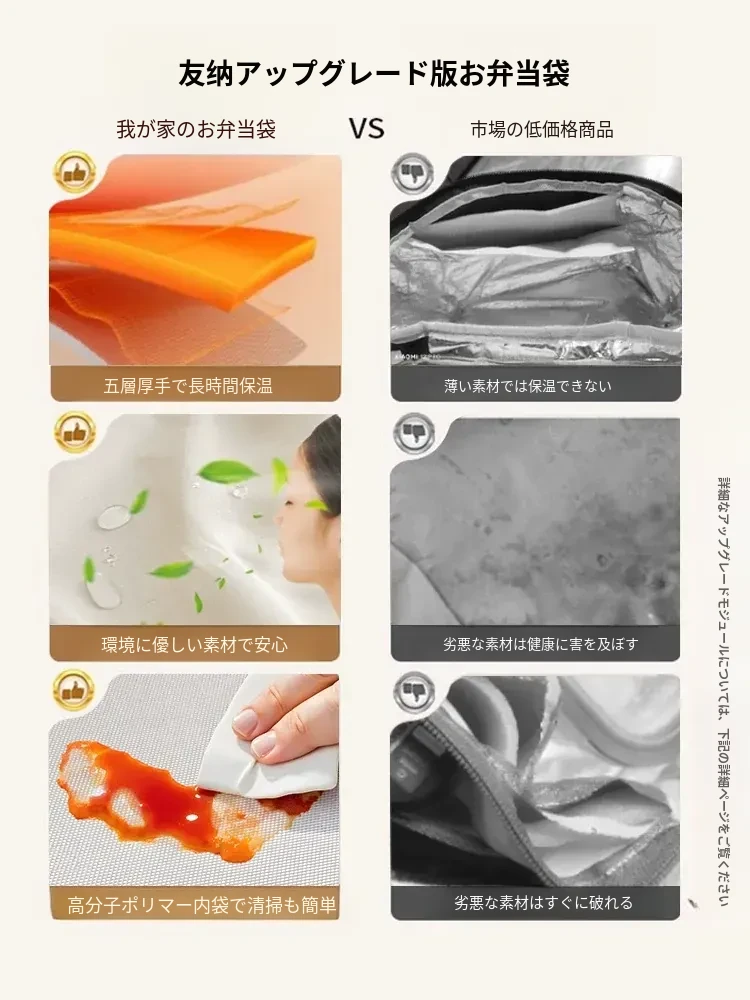 おしゃれで実用的!防水・防油の厚手お弁当バッグ - 学生やビジネスマンに最適な大容量ランチバッグ。持ち運び便利で、美味しいお弁当をいつでも新鮮に!
