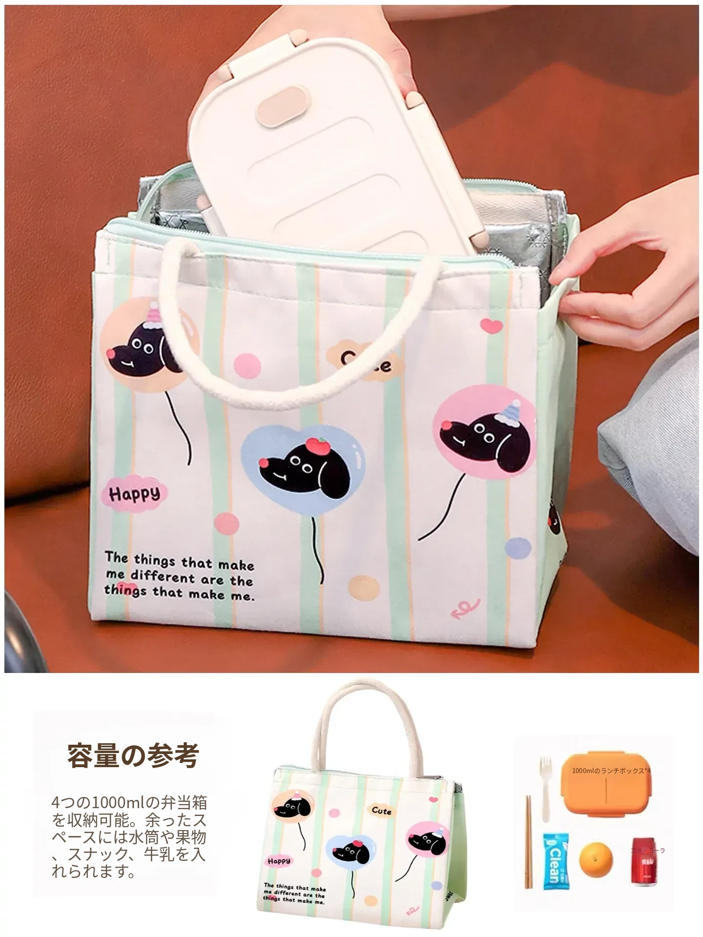 緑白❤️風船小犬【保温保冷丨防水防污丨大容量】