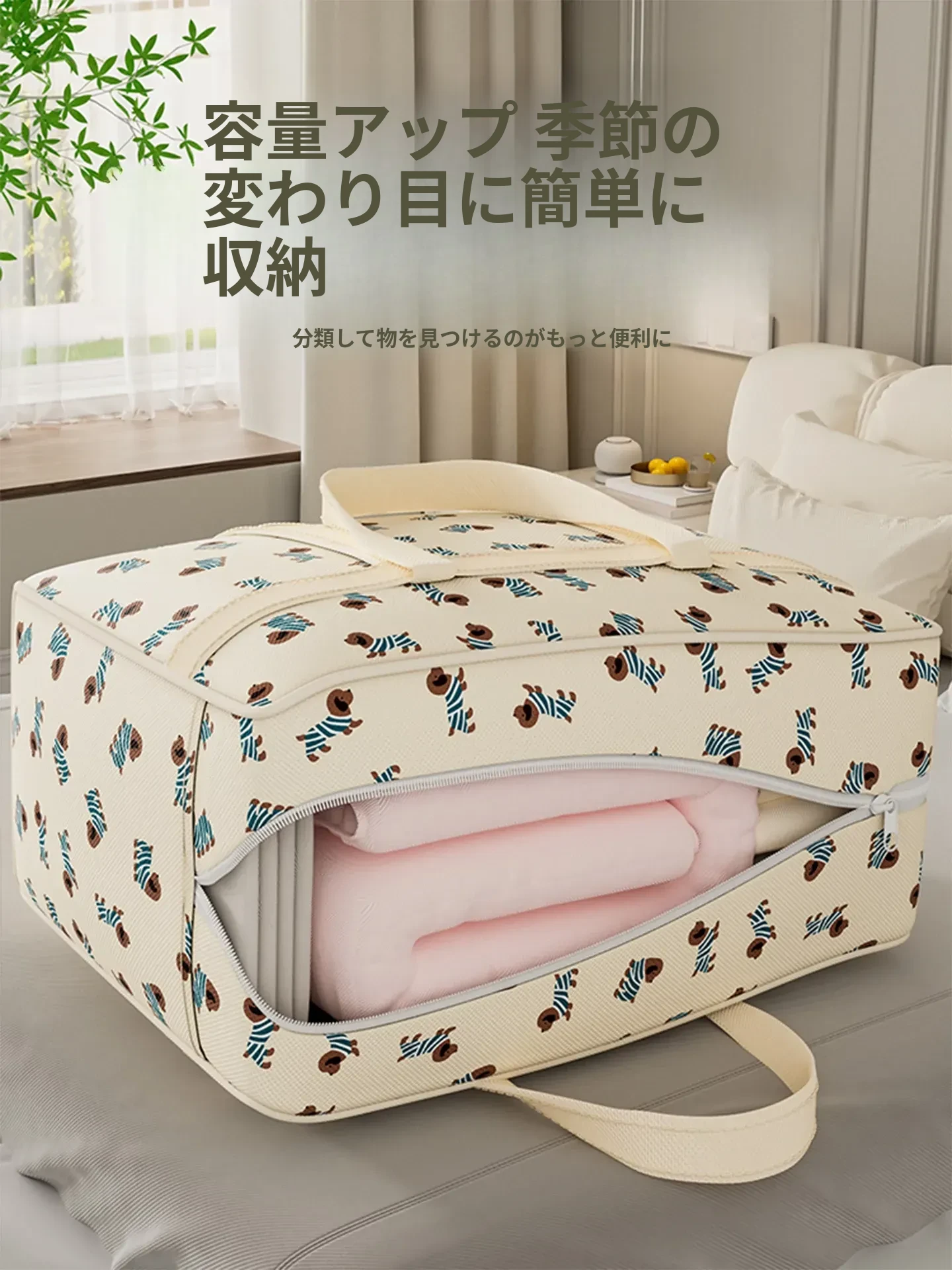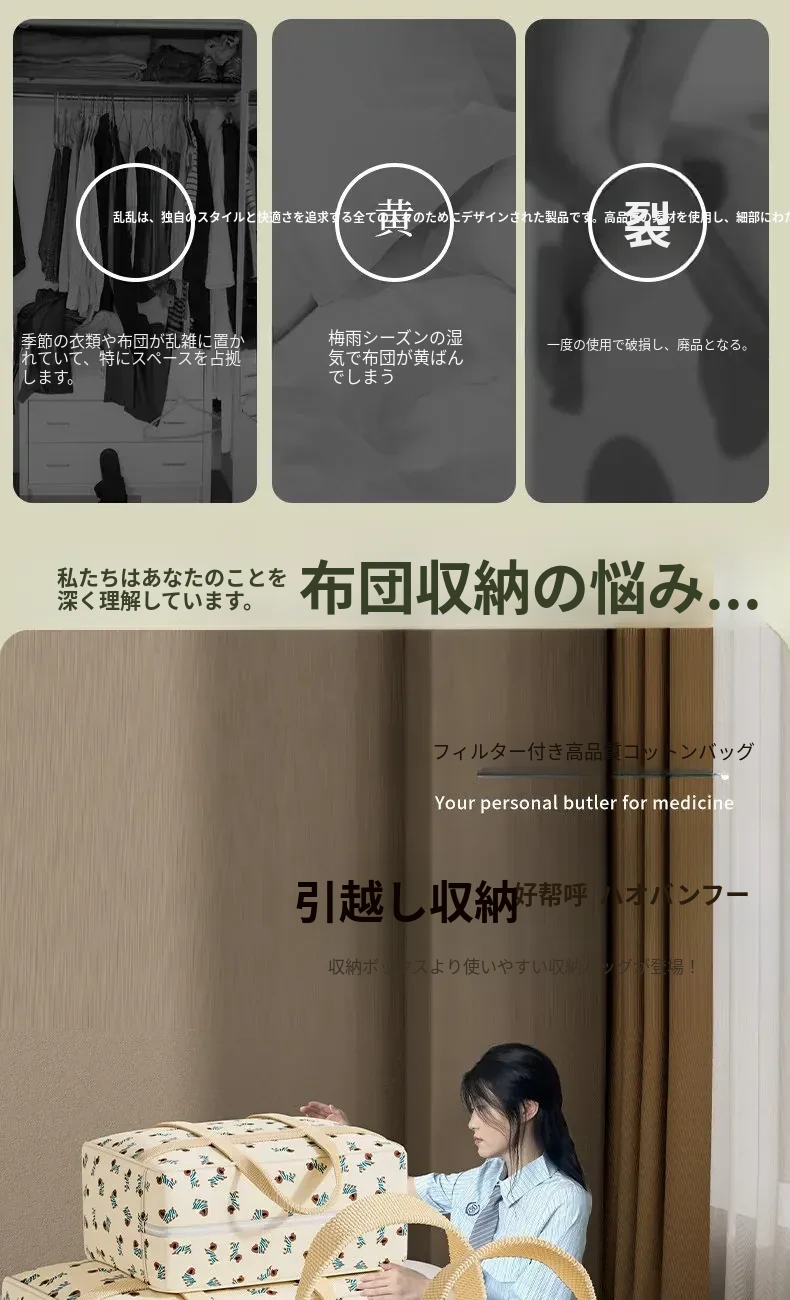 引っ越しに最適!大容量・厚手の収納バッグ - ふわふわの毛布や衣類をしっかり整理できる、便利な家用バッグ!