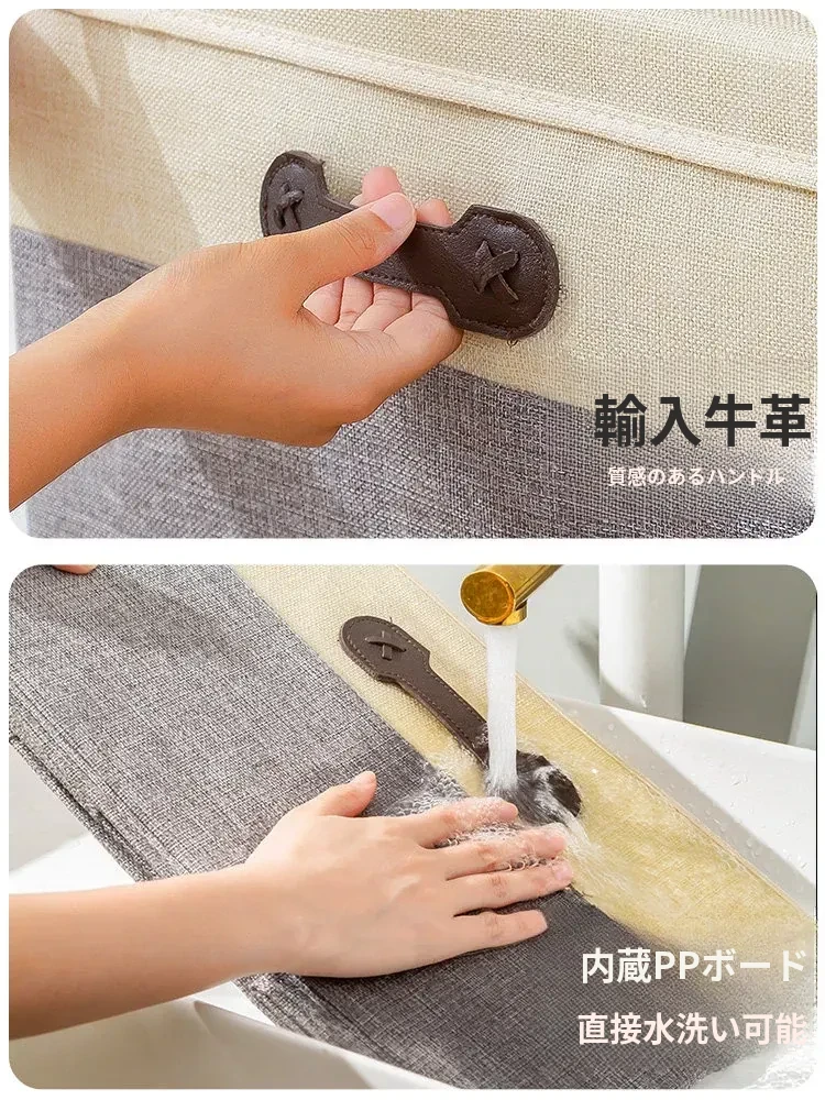 【竹炭グレー】厚手のコットンリネン/レザー製ハンドル❤防水&無臭/強い耐荷重