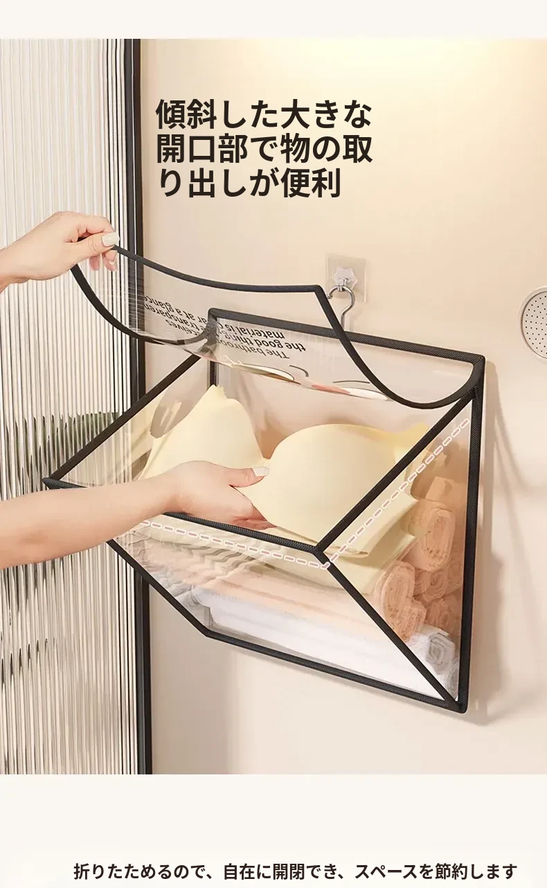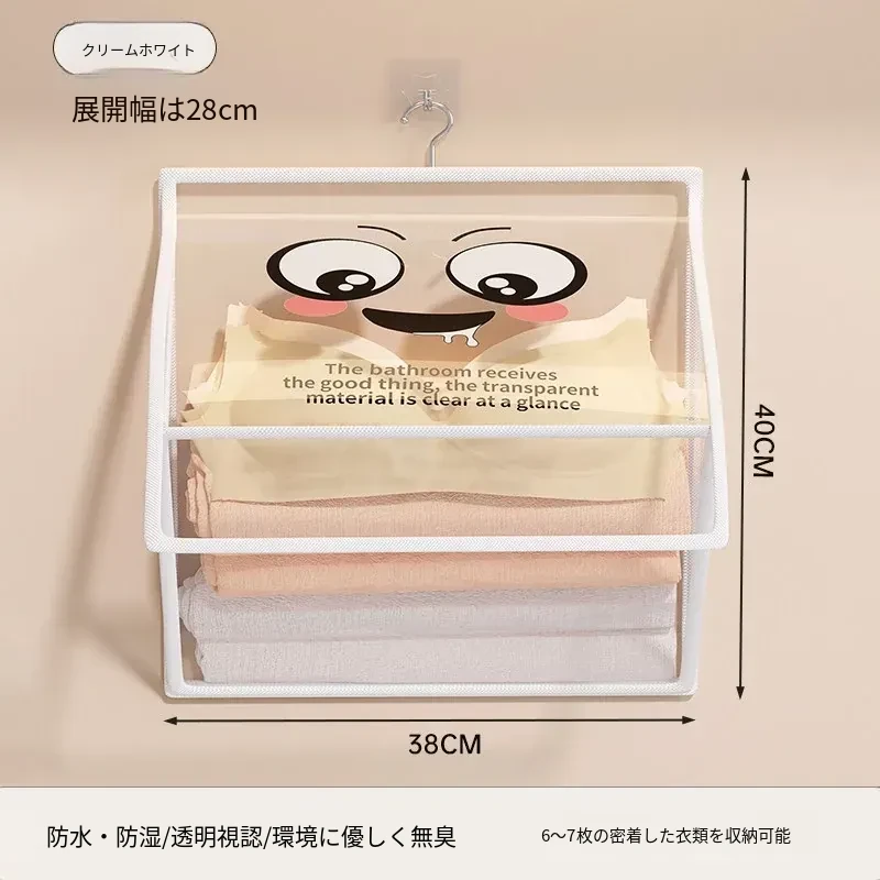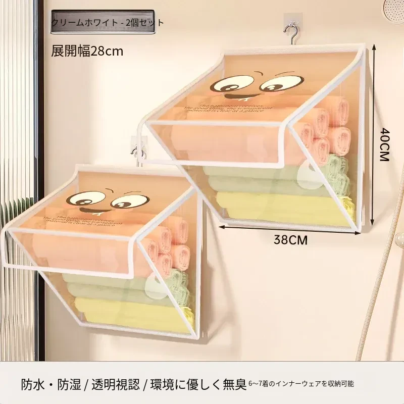✨店長おすすめ⭐体験用1個セット-アイボリーホワイト⭐防水粘着フック付き【6-7枚の下着やタオルを収納可】長さ38*幅28*高さ40cm