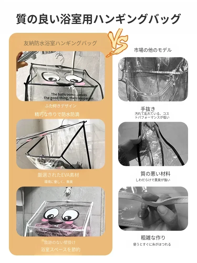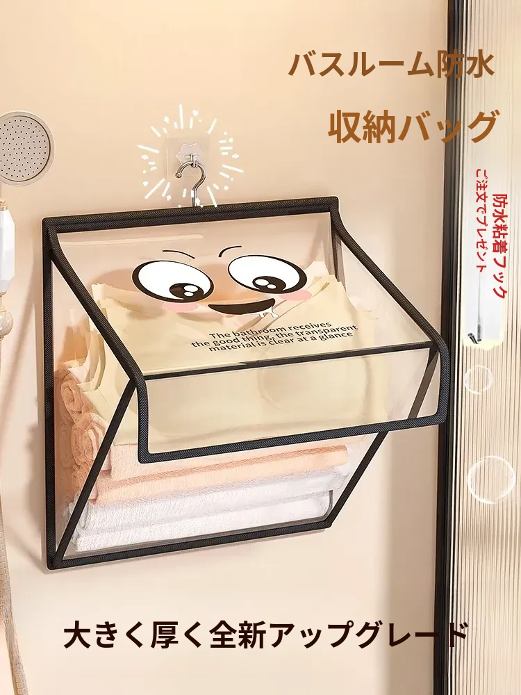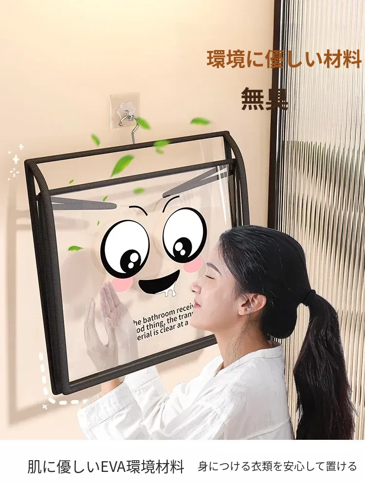 バスルーム防水衣類収納ポケット - お風呂での衣服置きに最適!衛生的で便利なハンギングインナー・パンティー収納袋、寮や家庭でも使えるスマートなアイテム。