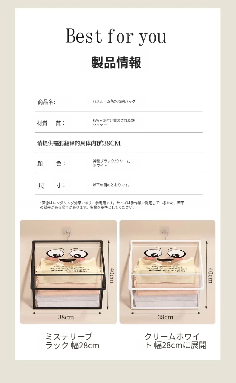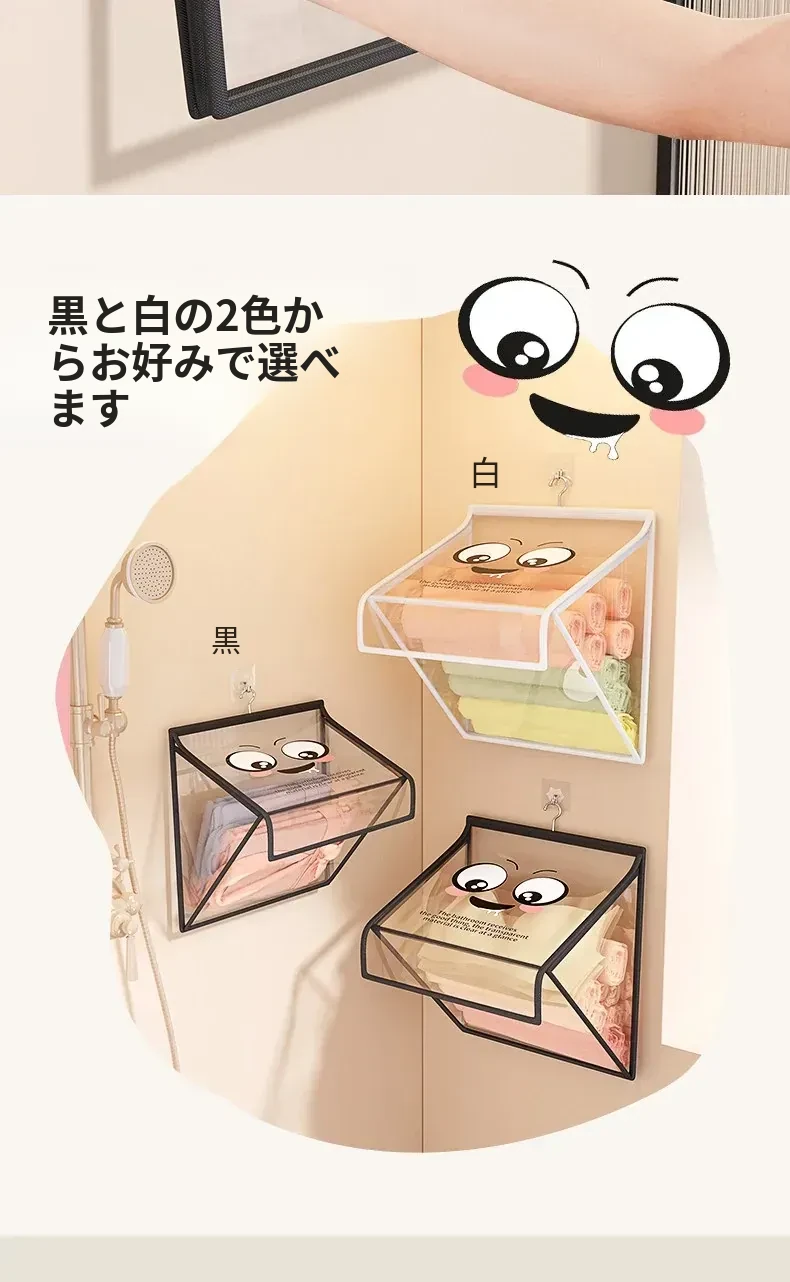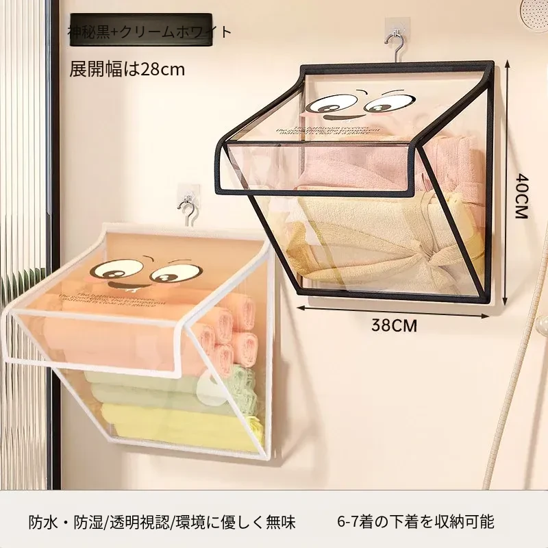 ✨超お得⭐全部欲しい-曜夜黒+アイボリーホワイト⭐防水粘着フック2個付き【6-7枚の下着やタオルを収納可】長さ38*幅28*高さ40cm