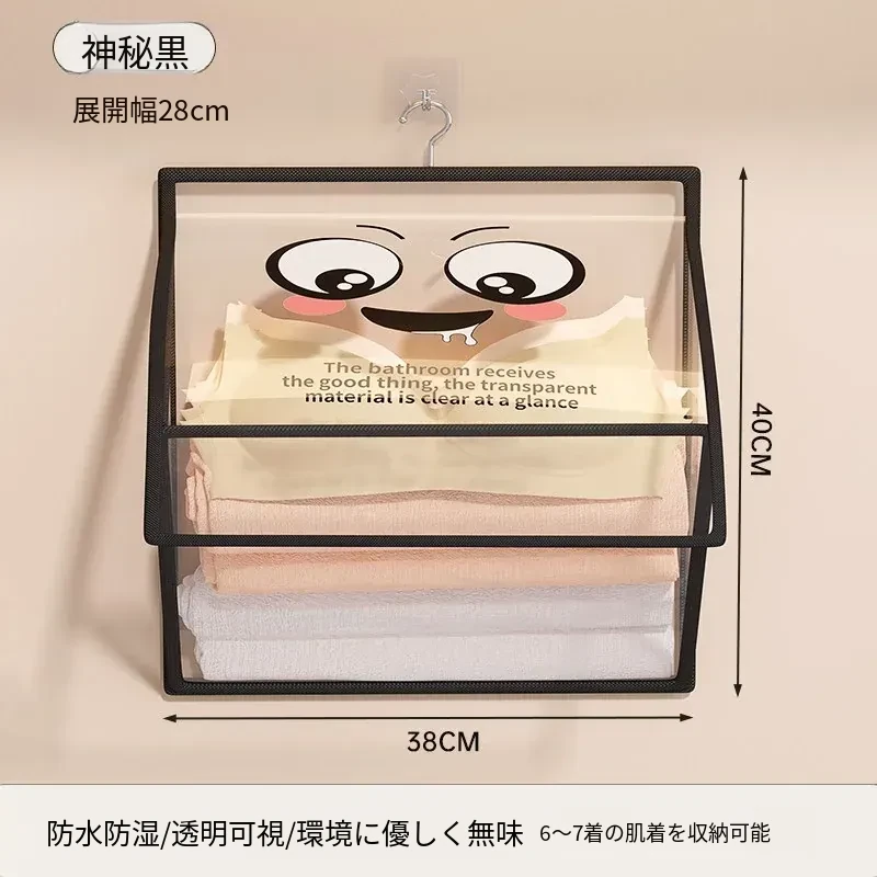 ✨店長おすすめ⭐体験用1個セット-曜夜黒⭐防水粘着フック付き【6-7枚の下着やタオルを収納可】長さ38*幅28*高さ40cm