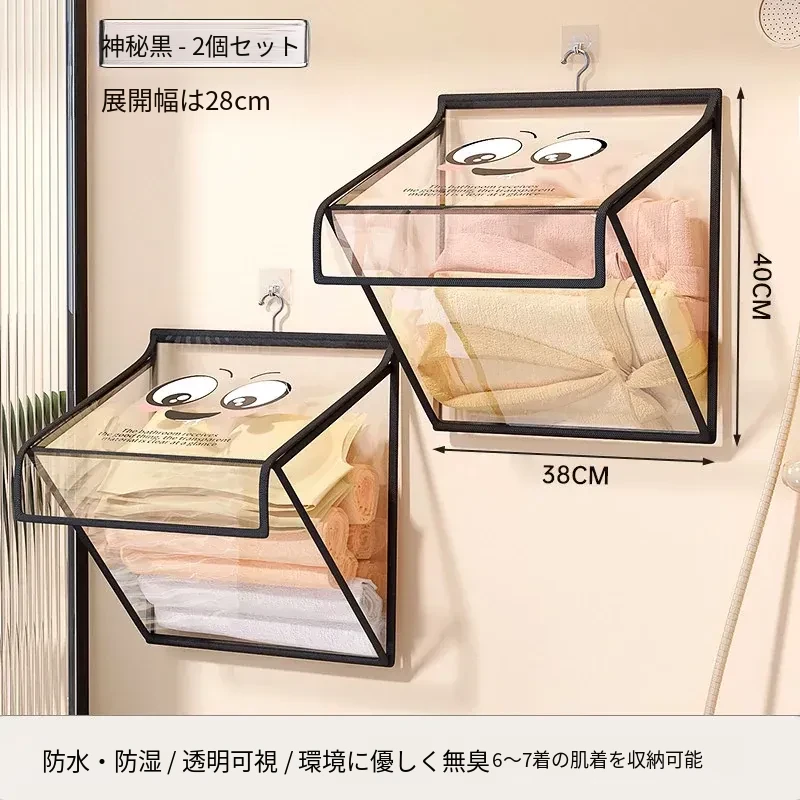 ✨超お得⭐お得な2個セット-曜夜黒⭐防水粘着フック2個付き【6-7枚の下着やタオルを収納可】長さ38*幅28*高さ40cm
