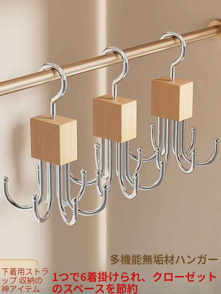 木製マルチ機能ハンガー - バッグや下着の収納に最適!寮生活にもぴったりな回転式フック付きの実木ハンガーで、衣類を美しく整理整頓。おしゃれで実用的な収納アイテムです!