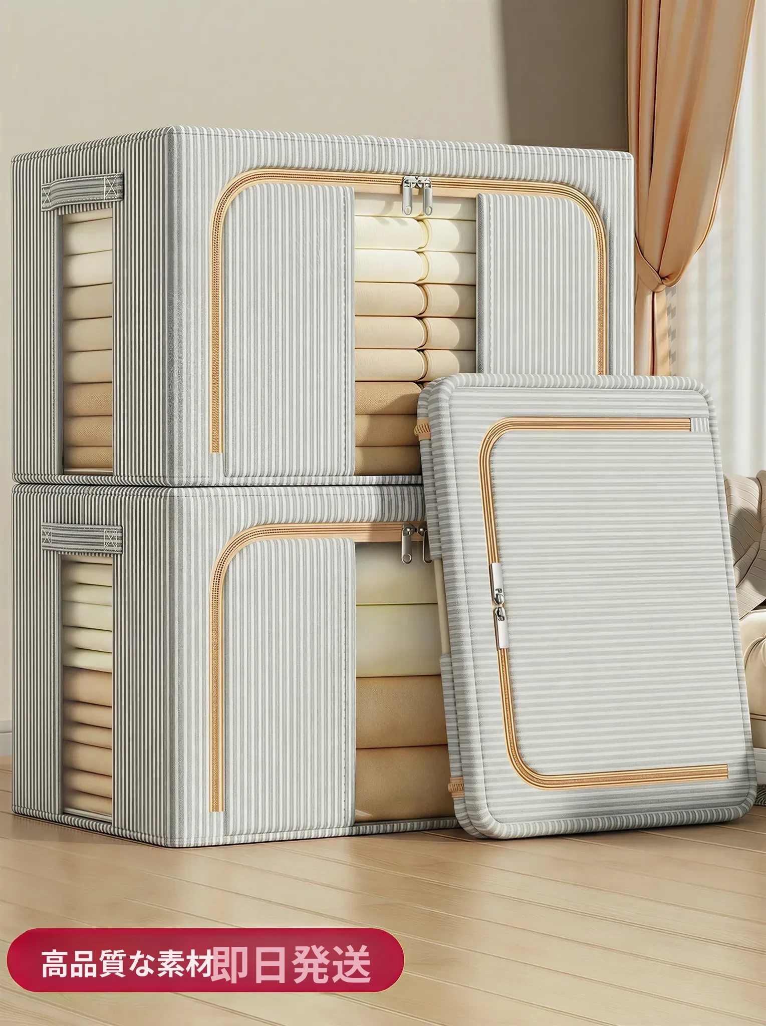 2026年新作!家庭用折りたたみ式衣類収納ボックス - 衣類や布団をスッキリ整理!おしゃれなファブリック素材で、スペースを有効活用!