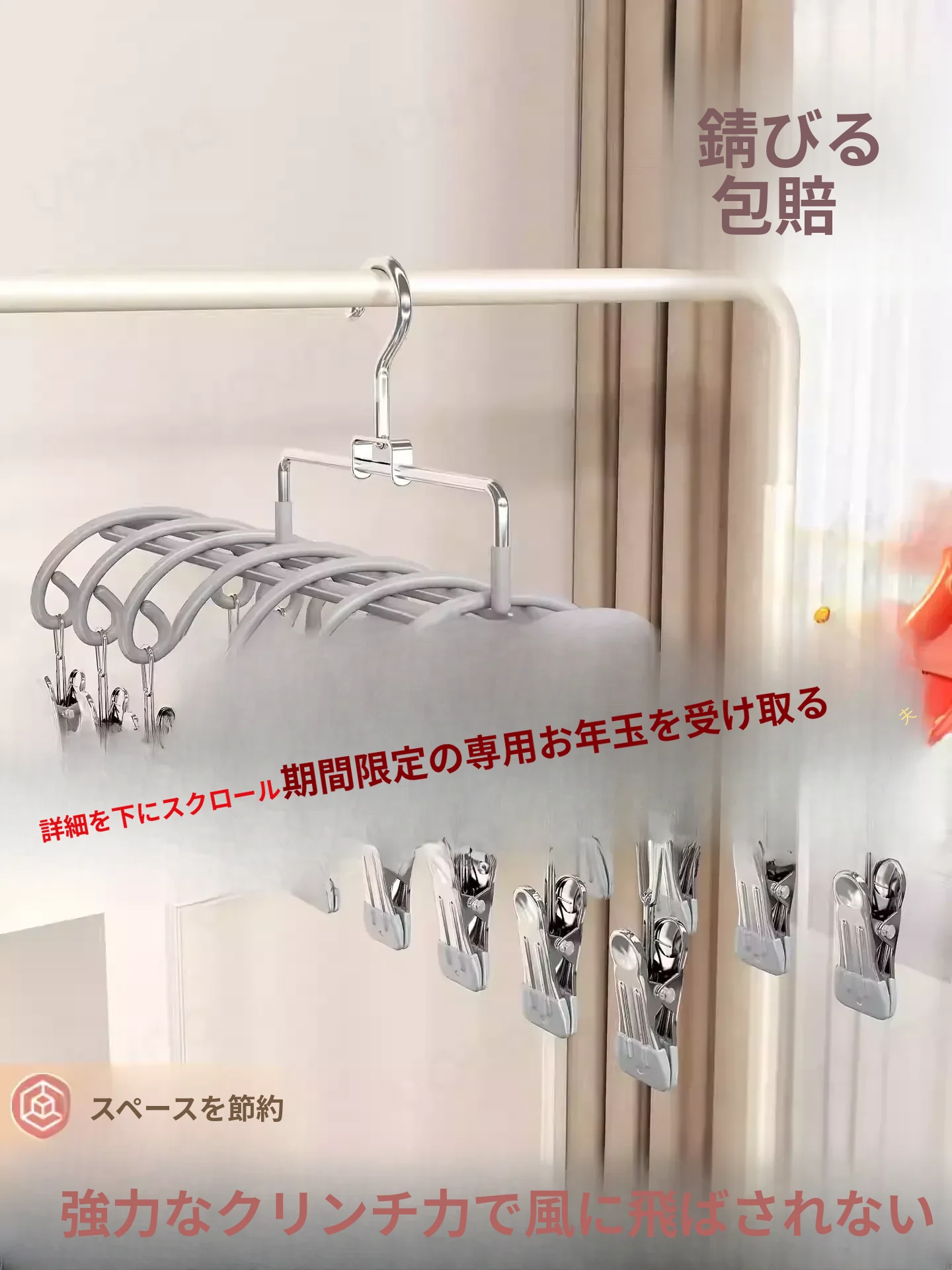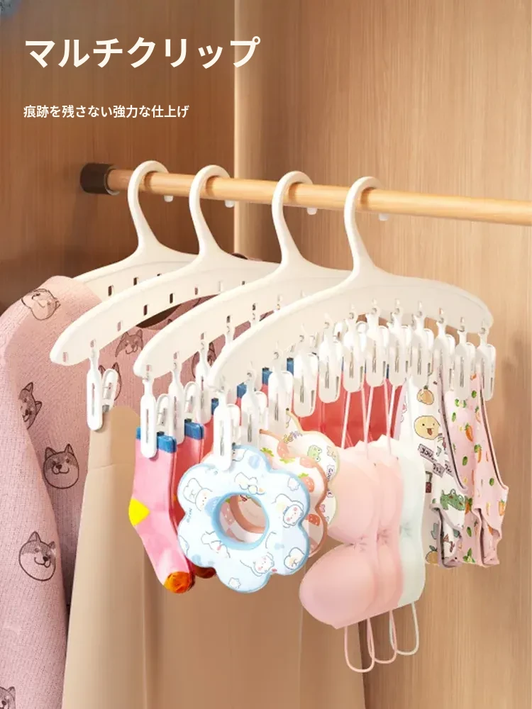 多機能ハンガー お子様の衣類収納に最適!ベビー用スタイや靴下も簡単に干せる便利なアイテム!すっきり整理できる衣類収納の必需品!