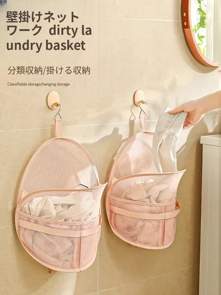 「防水&多機能!内衣・靴下収納ハンガーポケット — クローゼットやドアの裏に最適な、バスルームでも使える便利なネットバッグ」