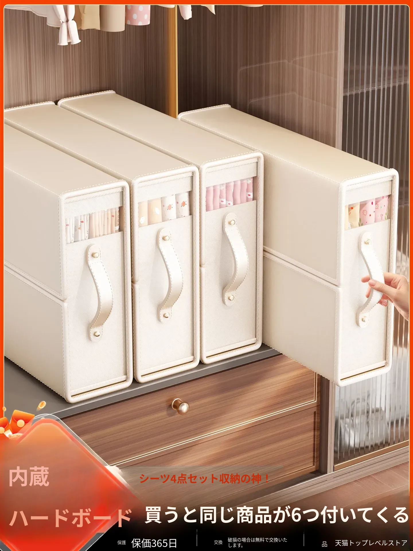 高品質の衣類整理ボックス4点セット!毛衣やパンツもすっきり収納できる便利なアイテム。家庭用のシーツや布団カバーも一緒に収納可能。おしゃれなクローゼット作りに最適です!