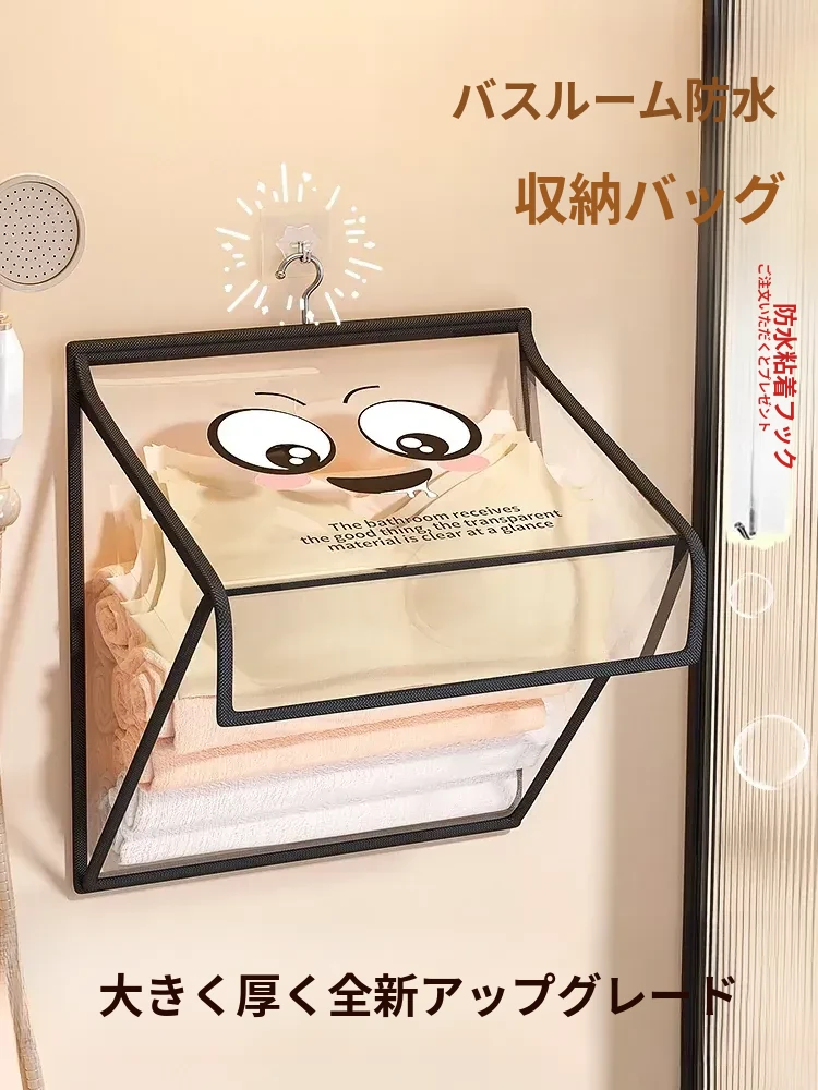 バスルーム防水収納バッグ!お風呂での下着や衣類を賢く整理。宿舎のドア裏に掛けて、スペースを有効活用。清潔で便利な収納アイテムで、毎日の生活をもっと快適に!