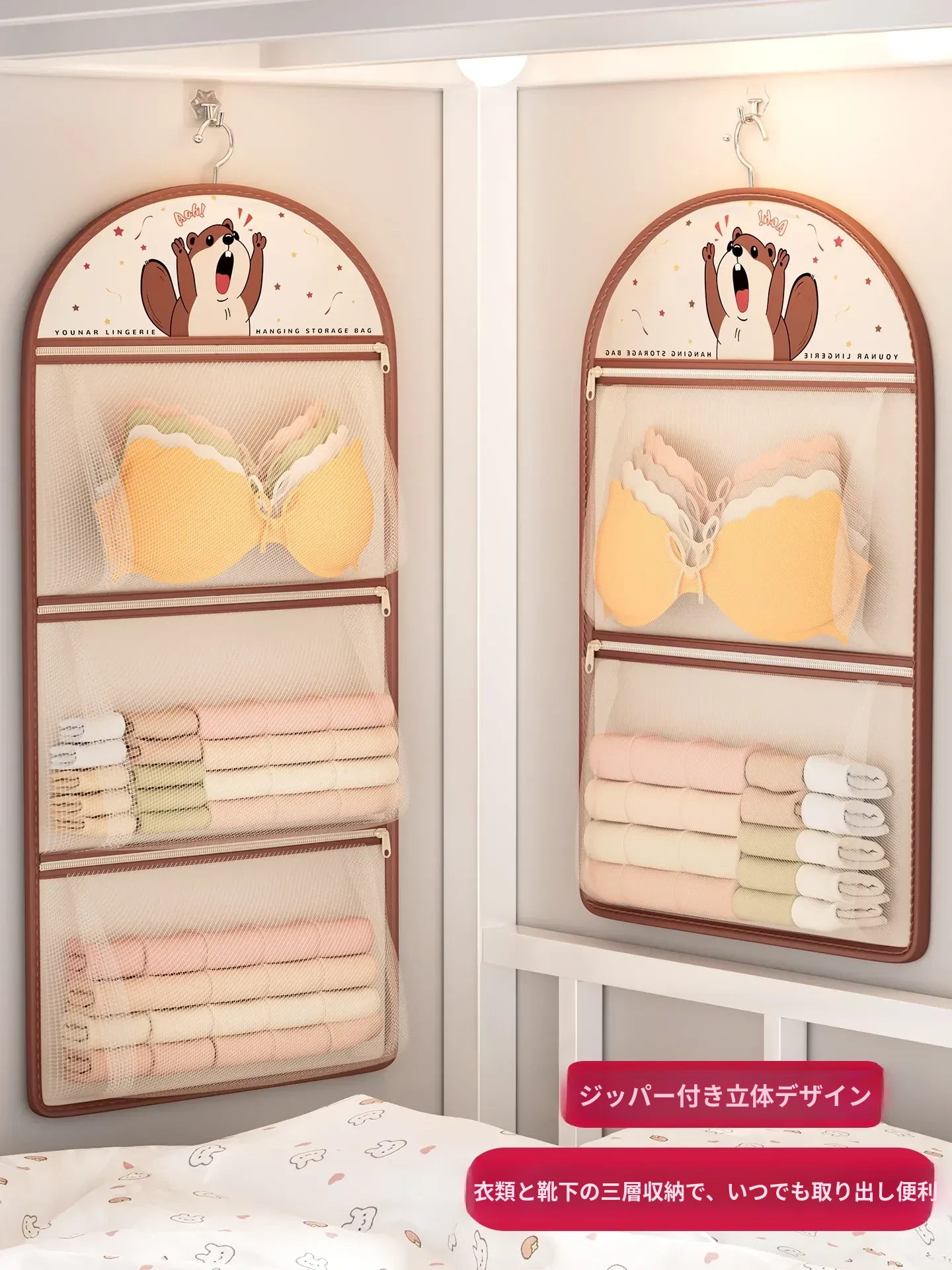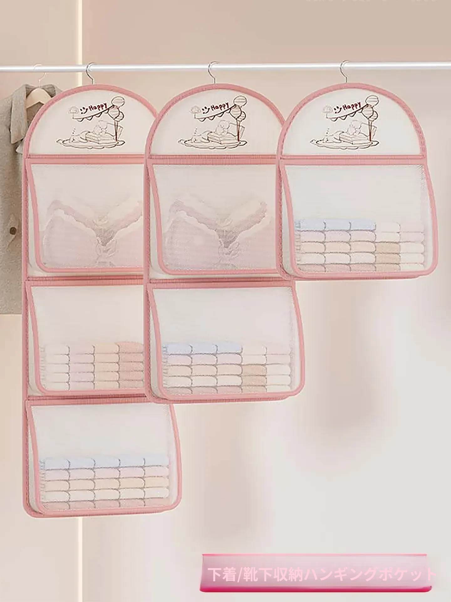 宿舎に最適!内衣・靴下整理の神アイテム!衣類収納ハンギングポケット - スペースを有効活用して、クローゼットをすっきり整理!ネットポケットで通気性抜群、清潔さを保ちます!