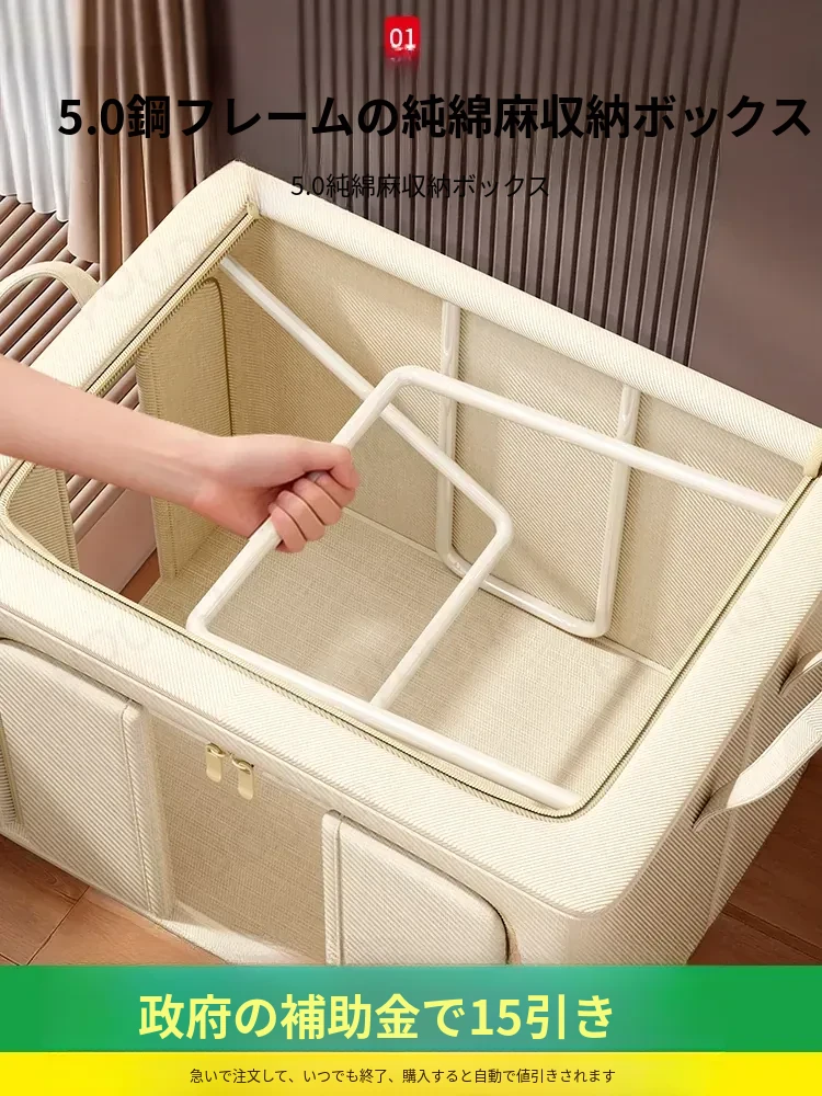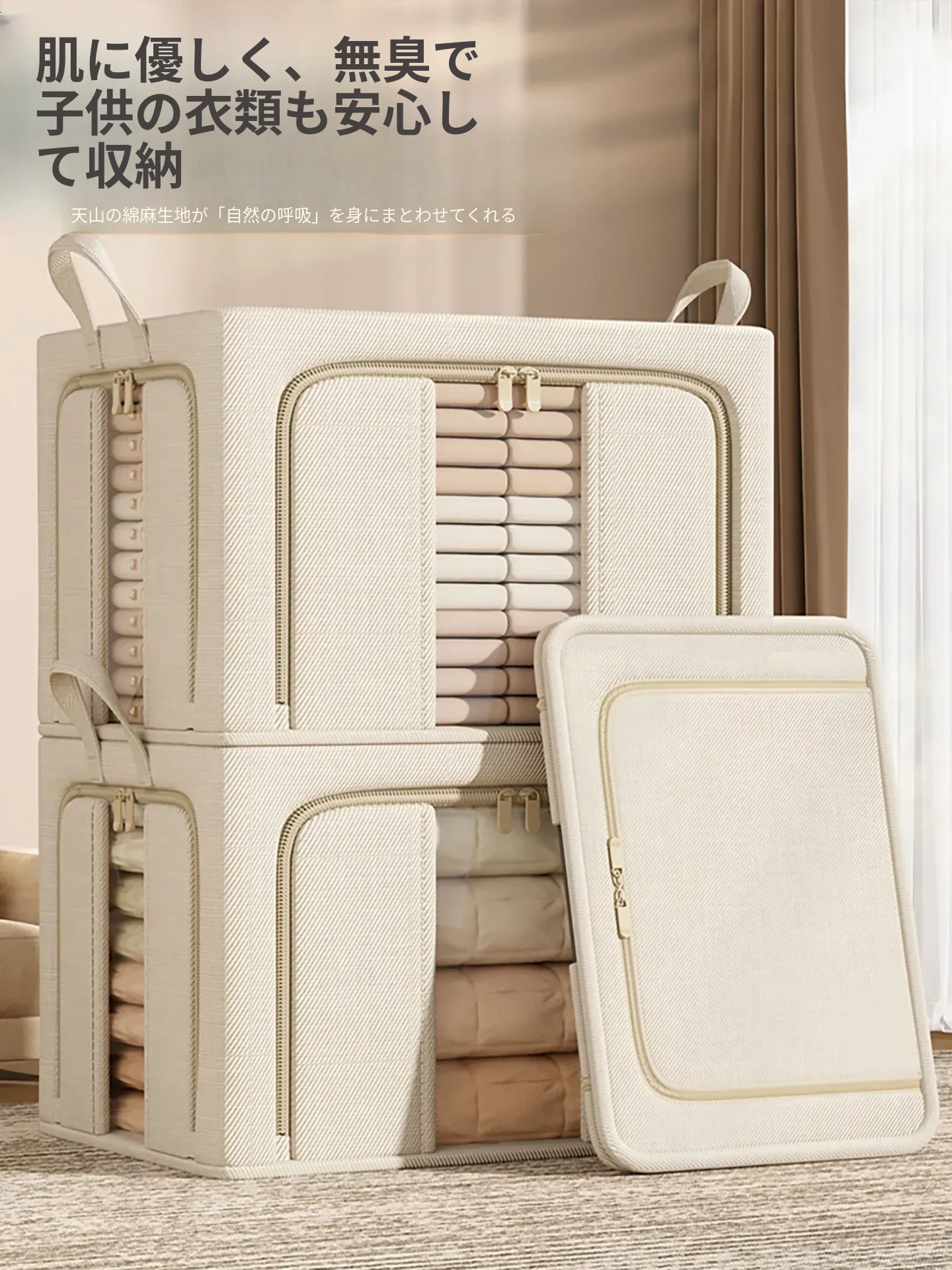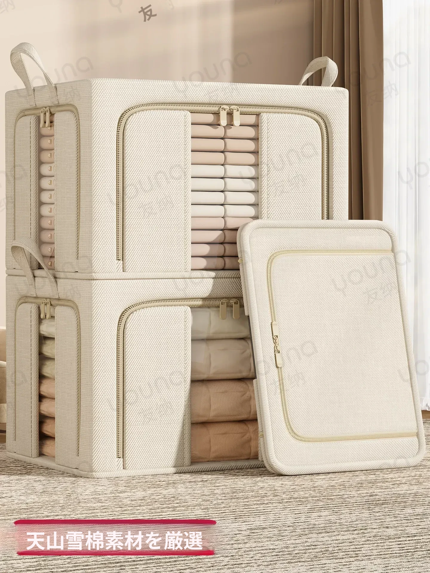天山のコットンリネン衣類収納ボックス|家庭用クローゼットや布団、ダウンジャケットの整理に最適!おしゃれで実用的な折りたたみ収納ボックス|寮生活にもぴったり!